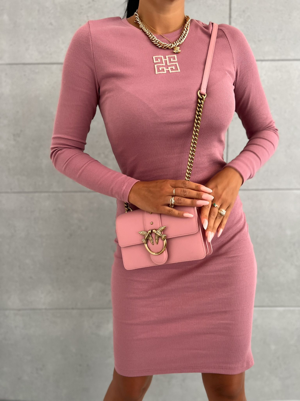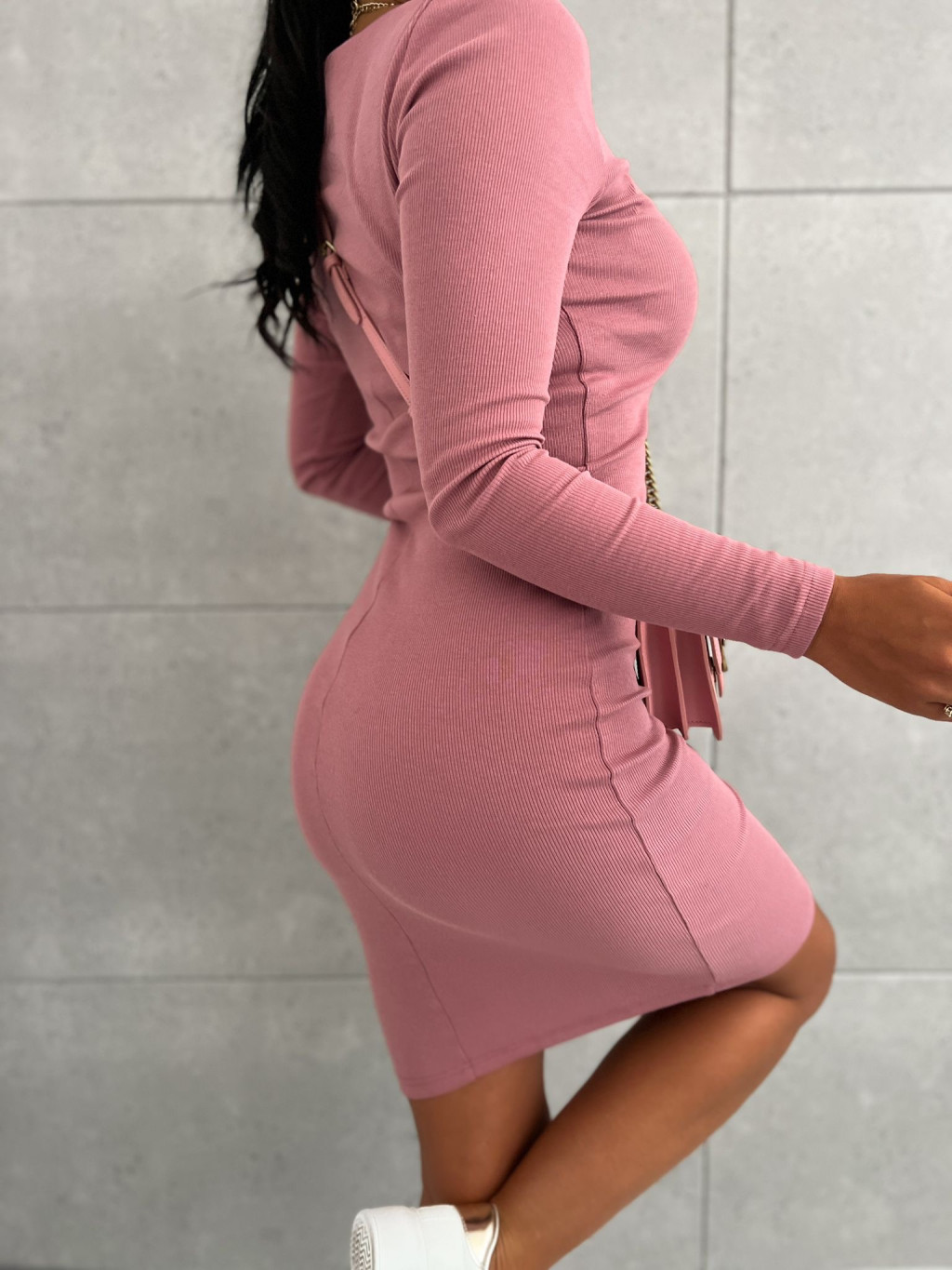 Elastické rebrované šaty s dlhým rukávom.