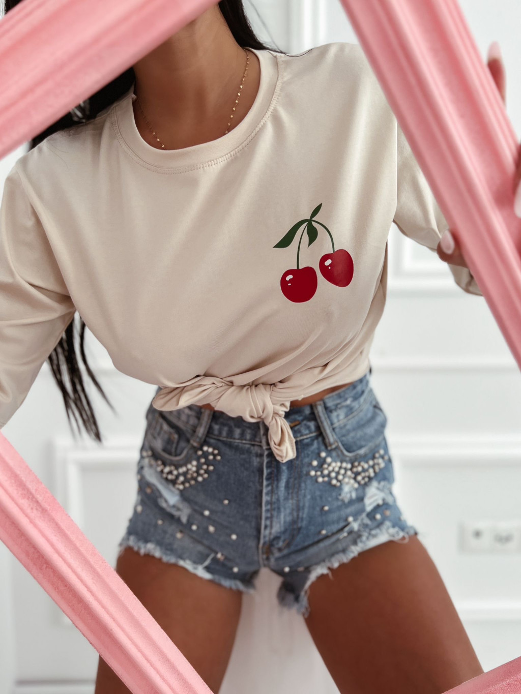 Bavlnené tričko s krátkym rukávom a potlačou čerešní.