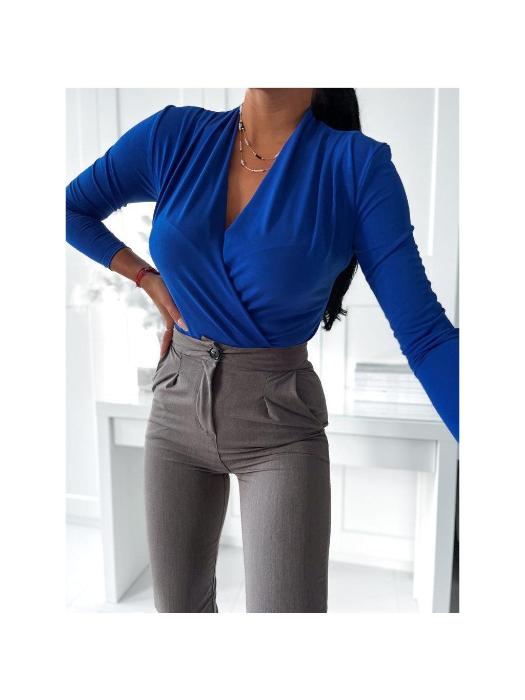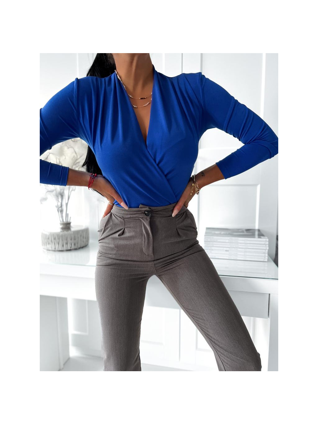 Elastické body s dlhým rukávom v zavinovacom vzhľade.