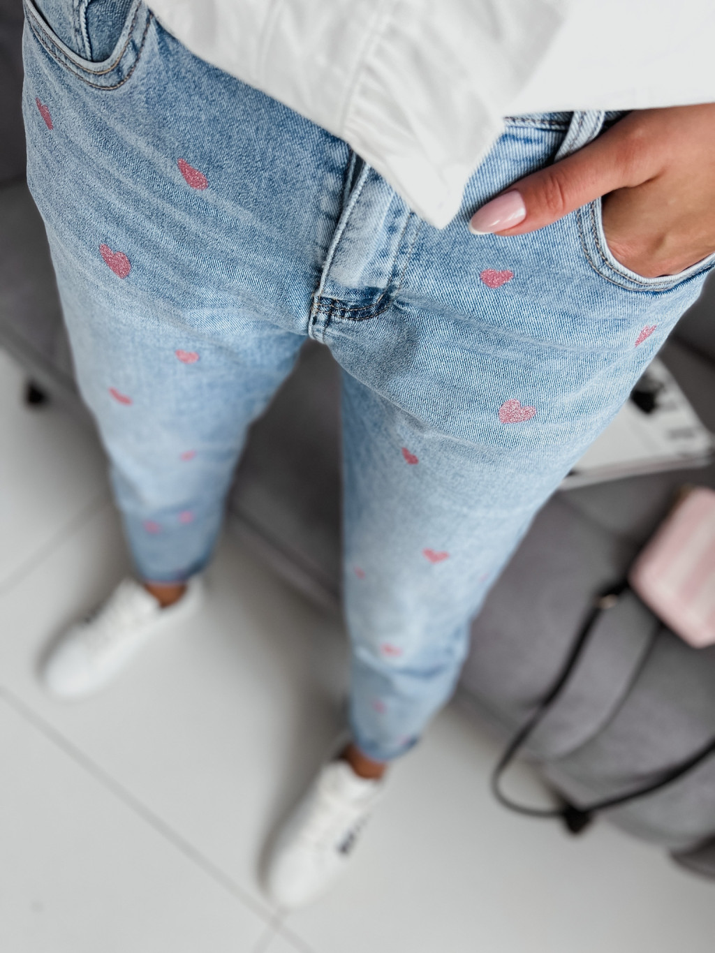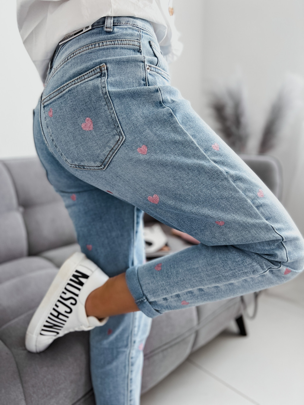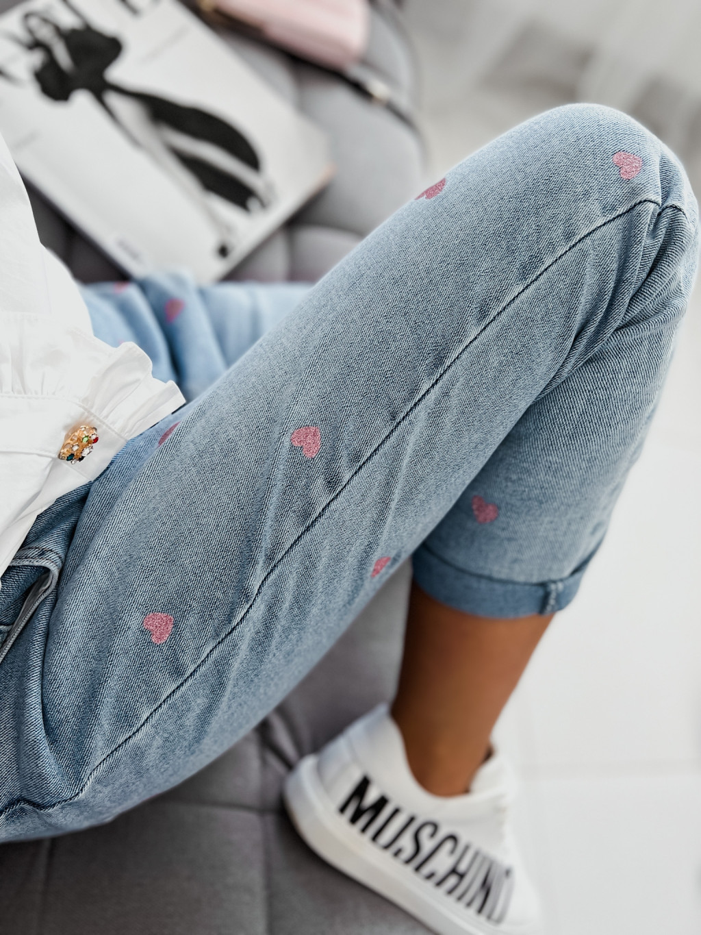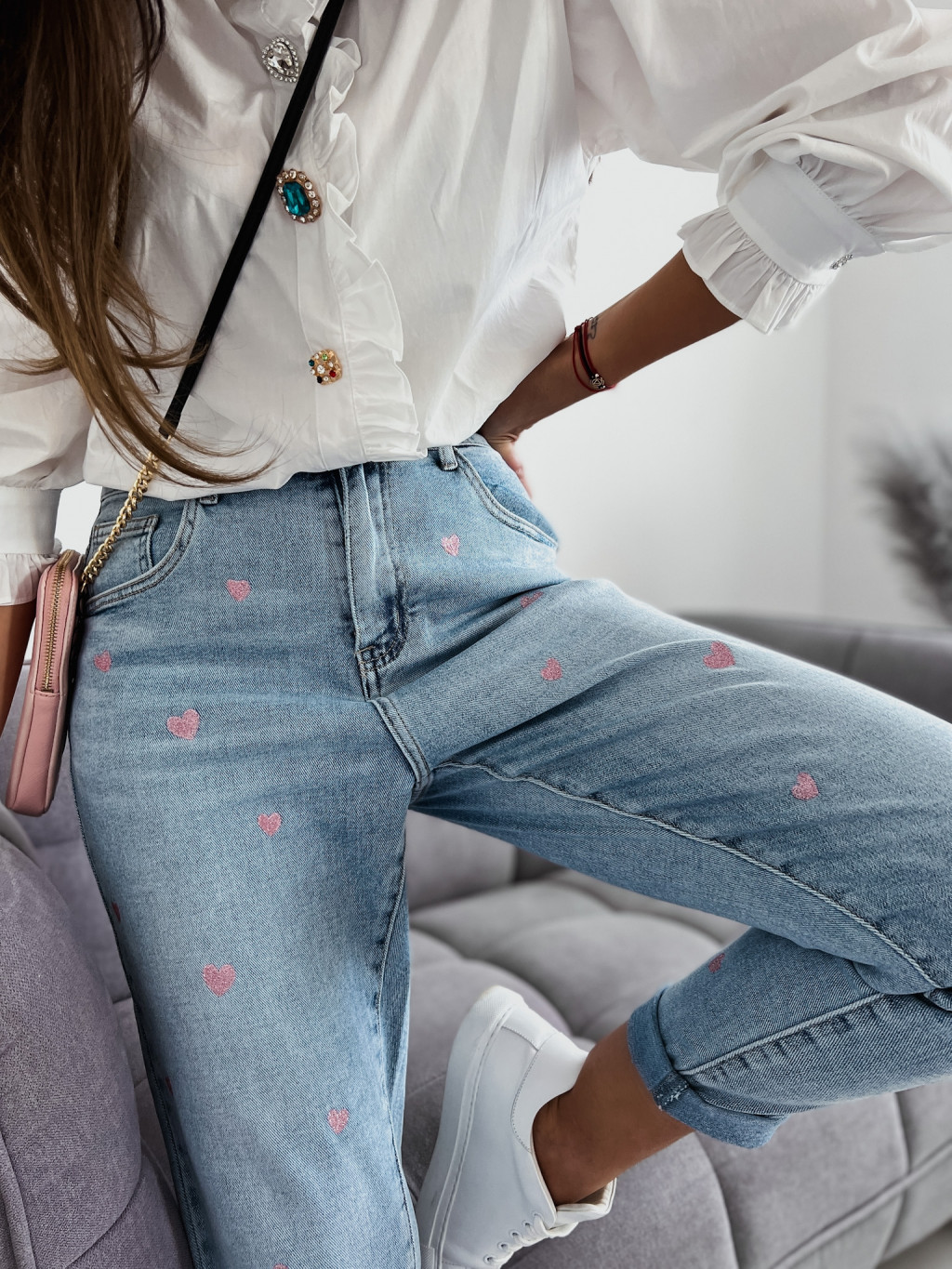 Jemne elastické boyfriend rifle so srdiečkami a vysokým pásom.