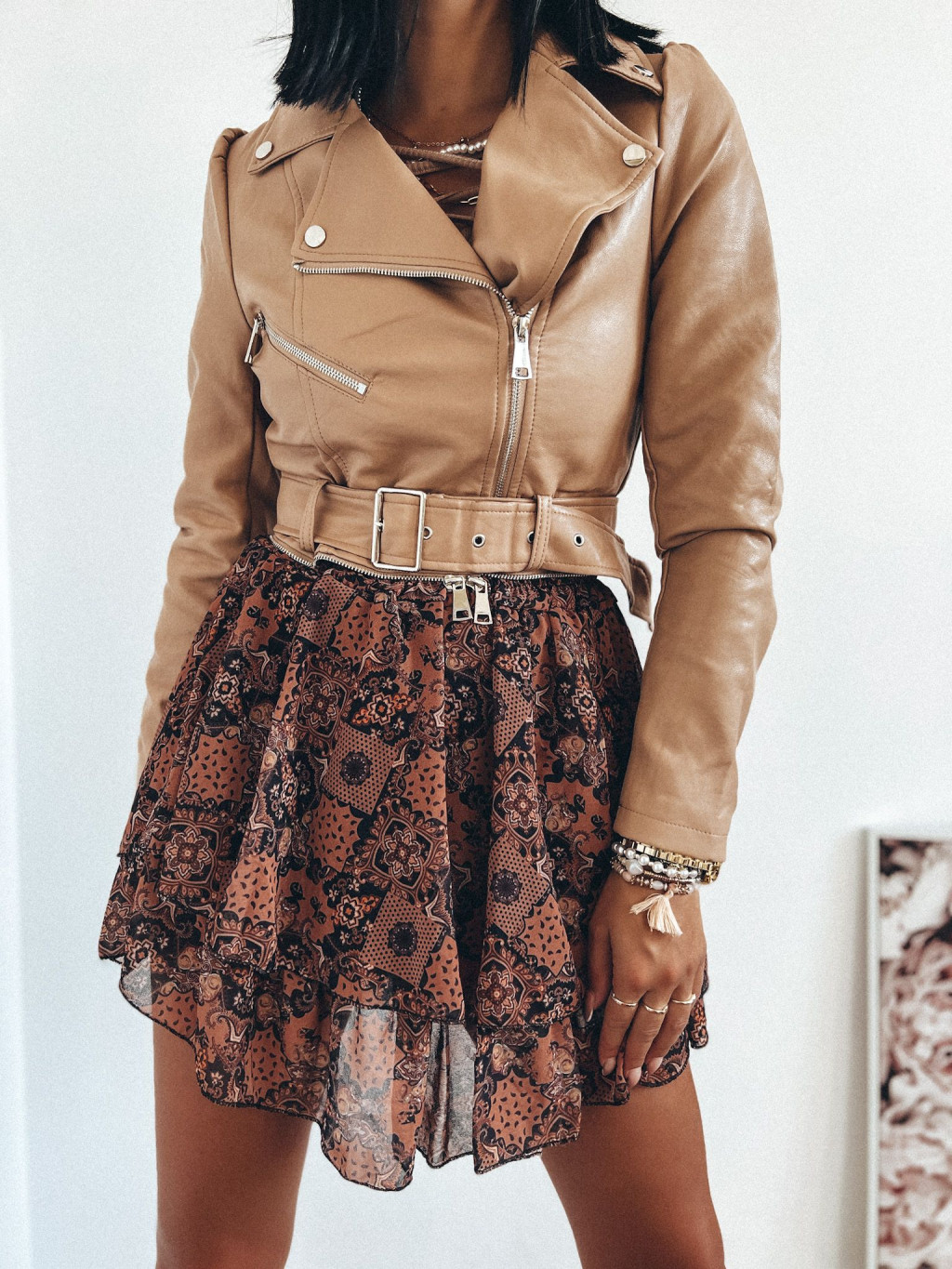 Dámska koženková bunda Stephanny 2v1- hnedá