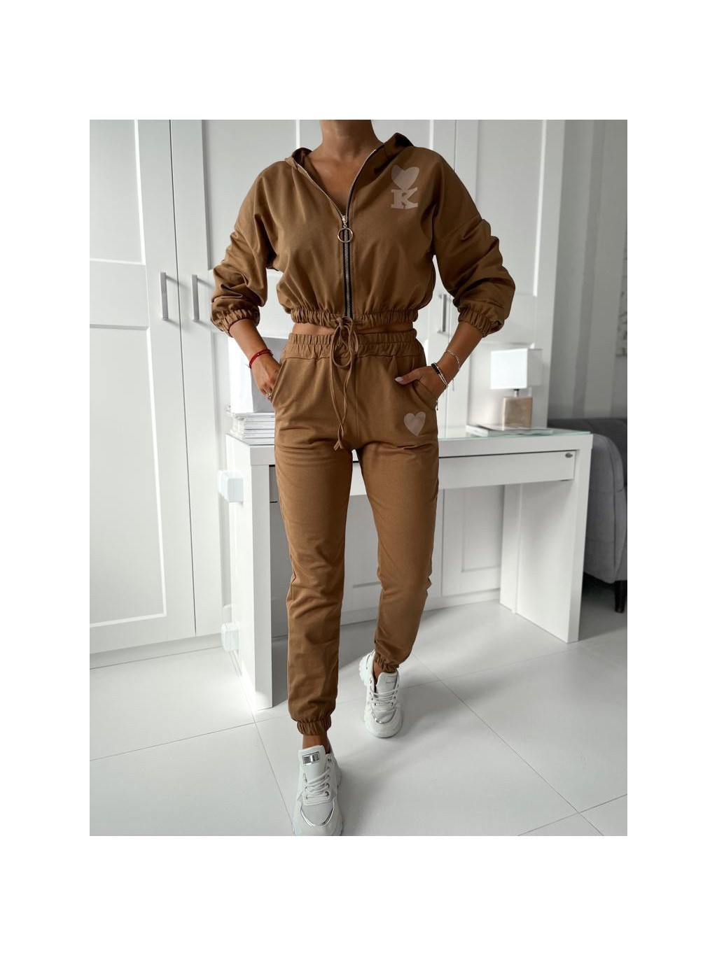 Mikina s kapucňou a šnúrkou na stiahnutie. Rukávy a spodná časť ukončená manžetou. Tepláky s gumou v páse a bočnými vreckami. Tepláky ukončené manžetou. Mikina a tepláky zdobené potlačou srdca.