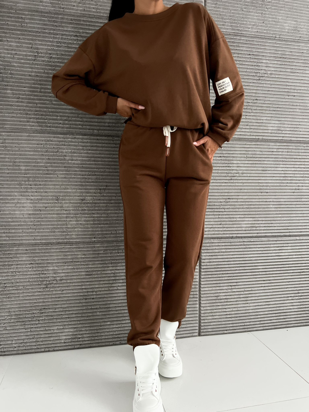 Štýlová a pohodlná tepláková súprava zdobená nášivkou.