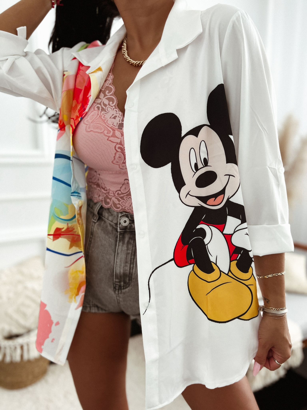 Dámska vzorovaná košeľa s potlačou Mickey - biela