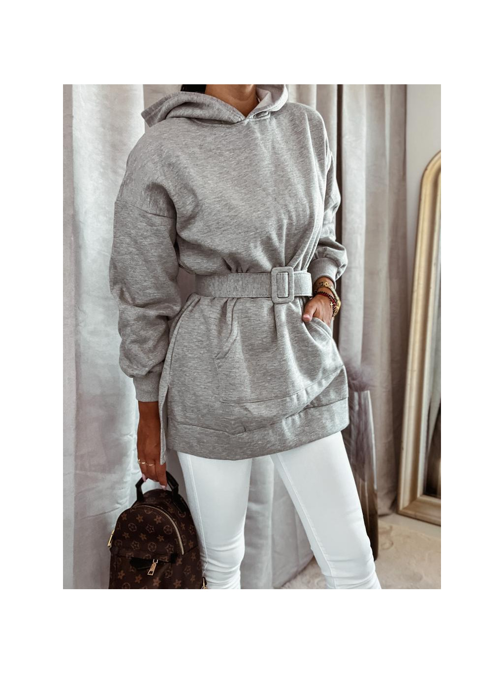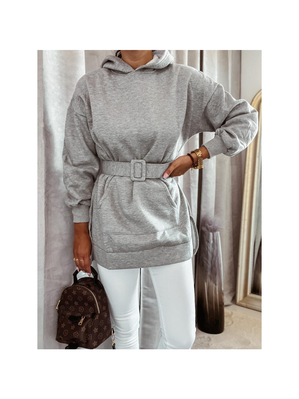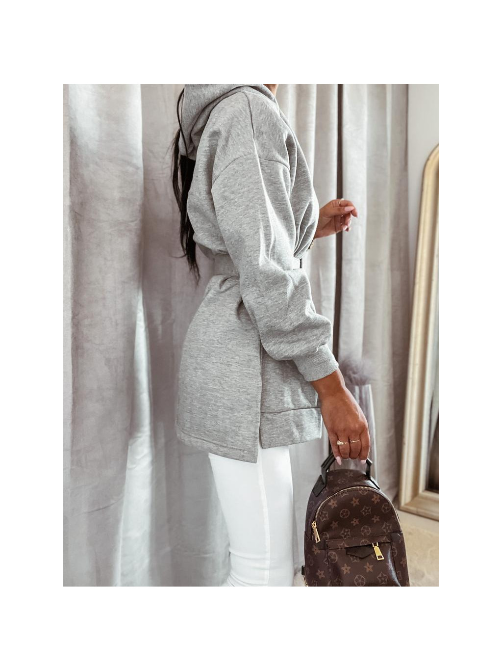 Zateplená predĺžená mikina s kapucňou doplnená opaskom.
