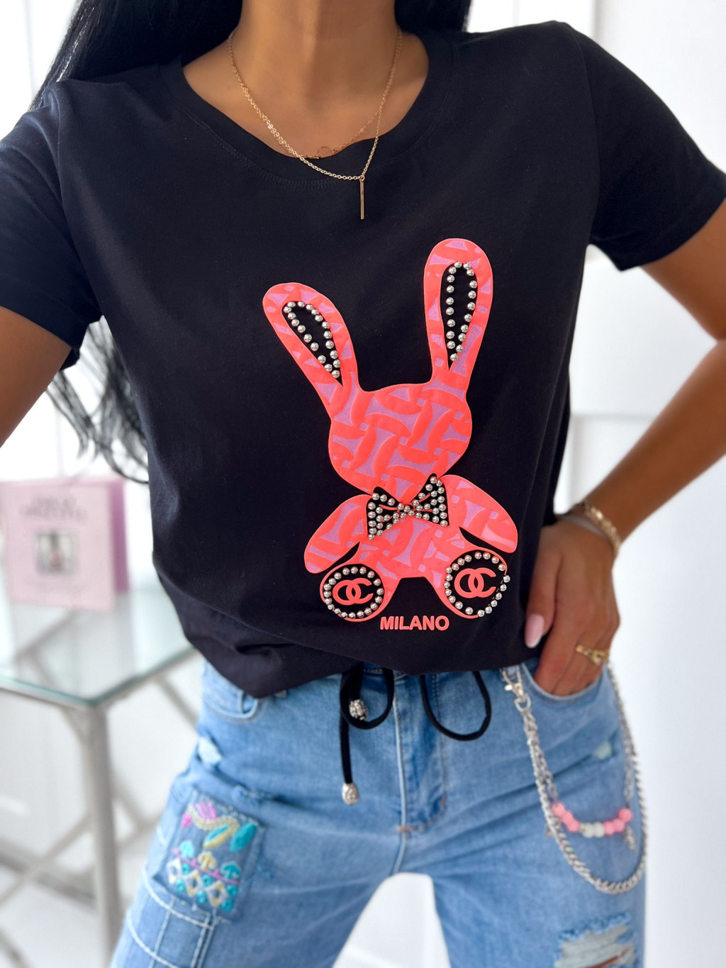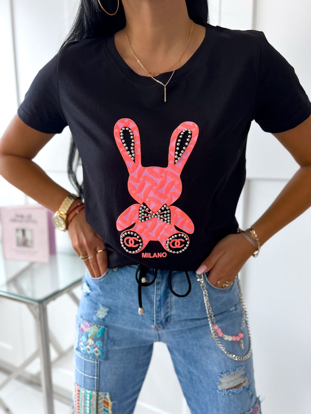 Dámske bavlnené tričko Bunny - čierne
