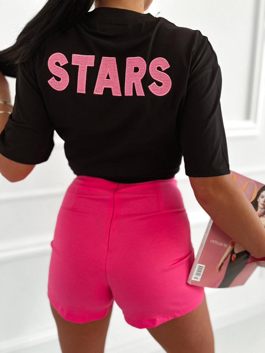 Tričko s okrúhlym výstrihom zdobené hviezdou s flitrami a nápismi.