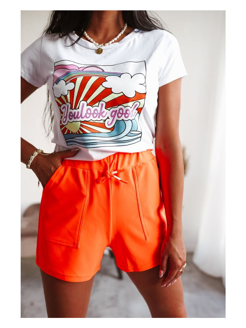 Dámske neónové kraťasy M.Sara - oranžové