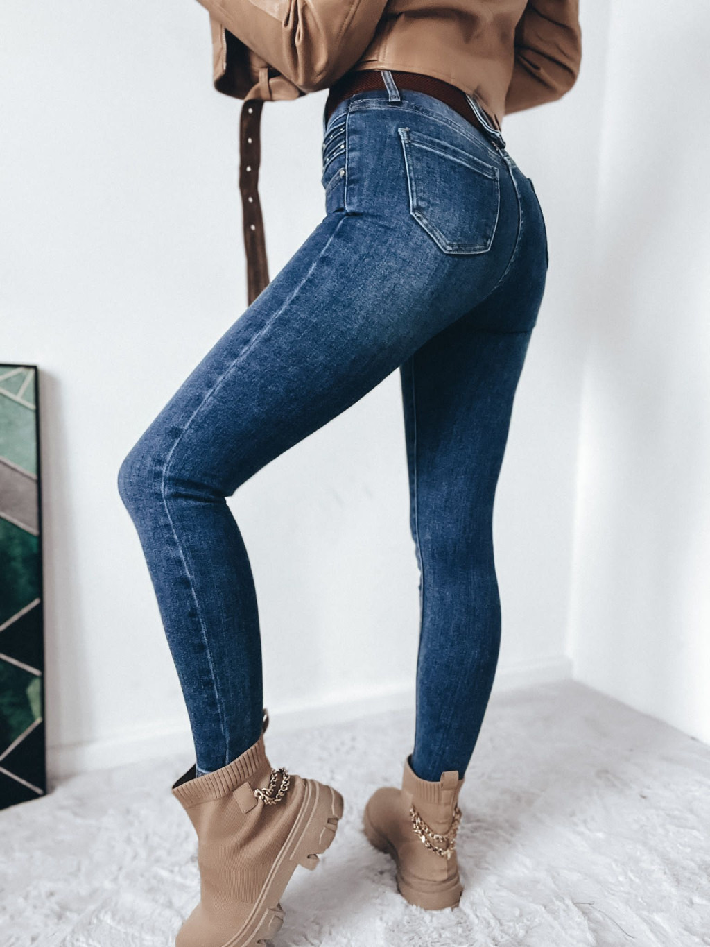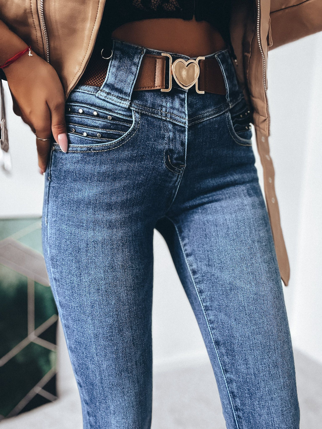 Elastické rifle s vysokým pásom zdobené kamienkami.