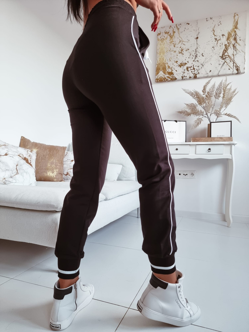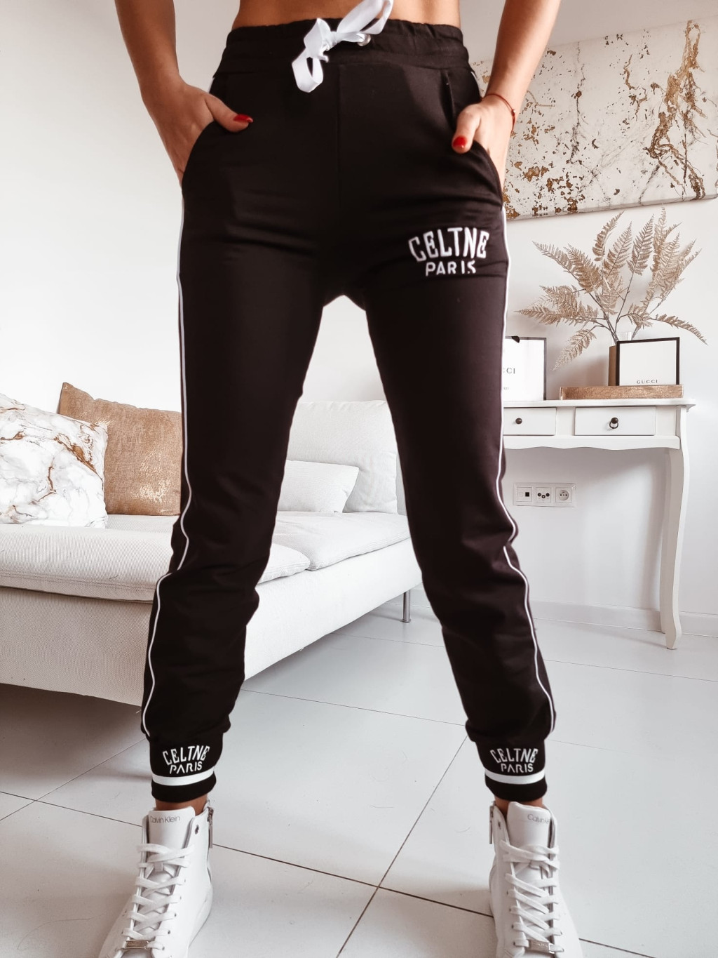 Štýlové bavlnené tepláky s výšivkou a efektným lemom.