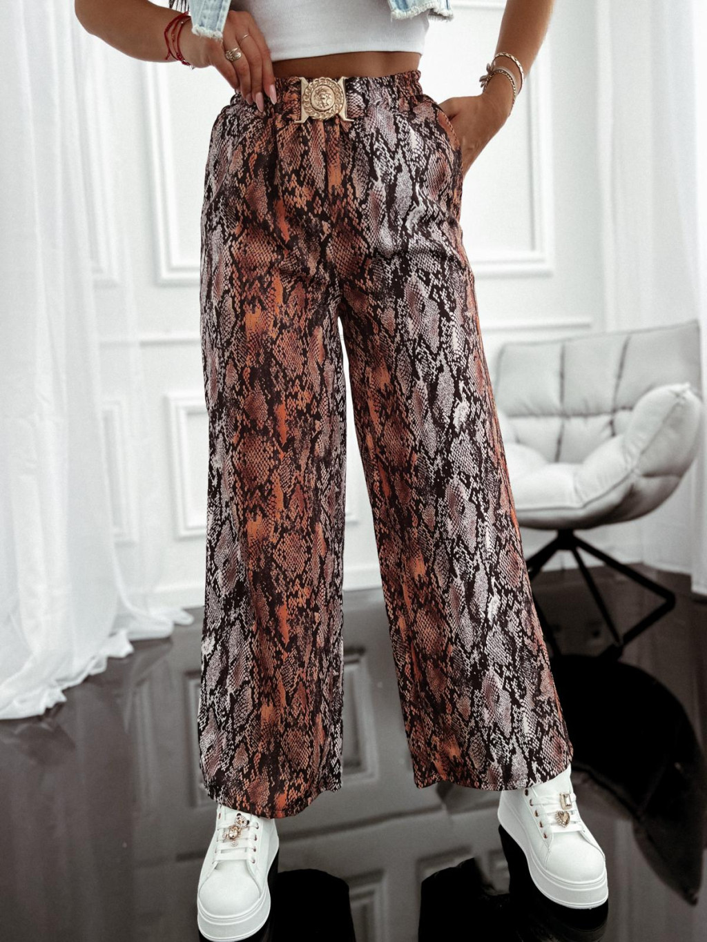 Široké viskózové nohavice s leopardím vzorom a zlatou prackou.