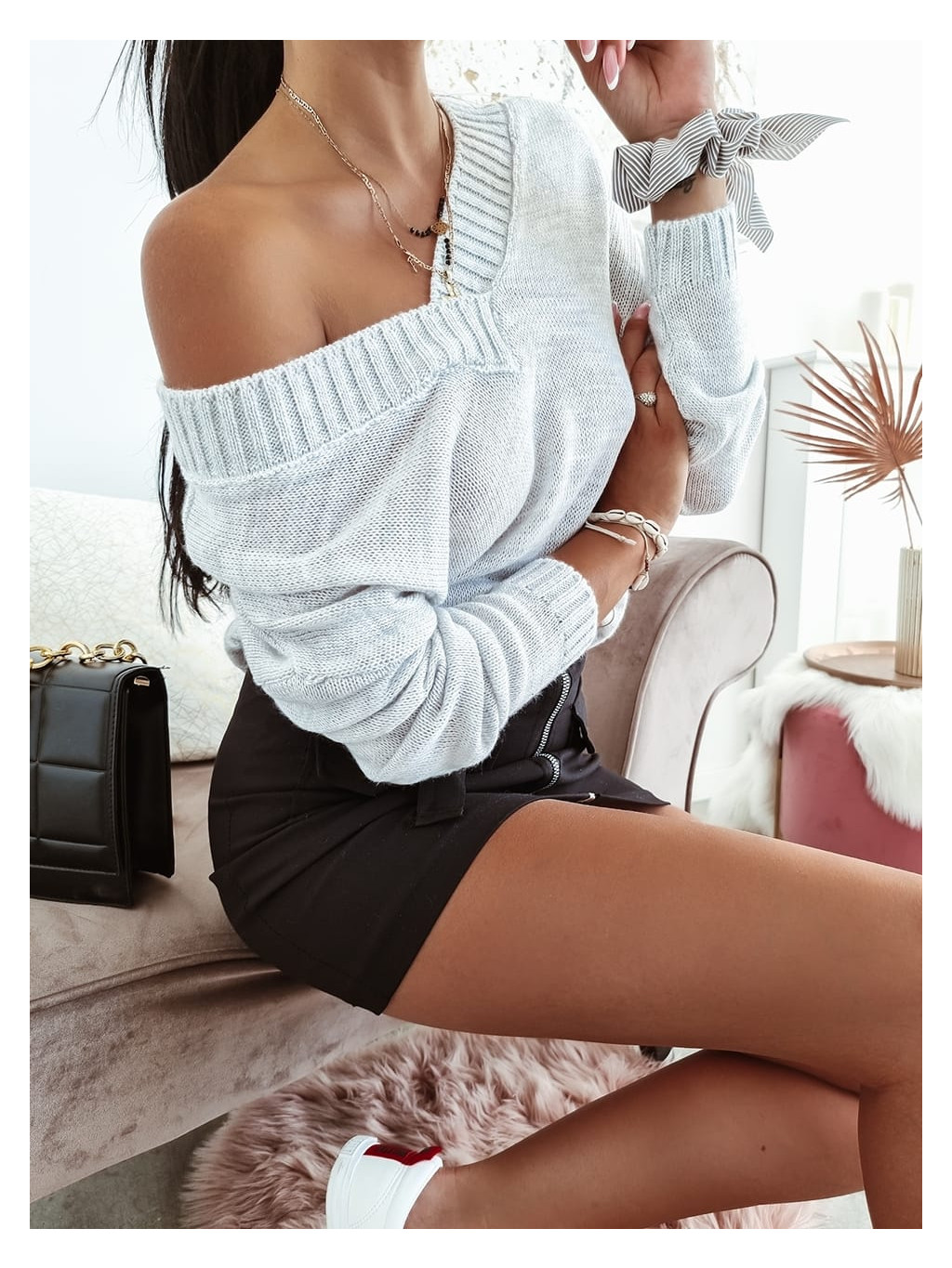 Dámsky hladký sveter s V-čkovým výstrihom.
