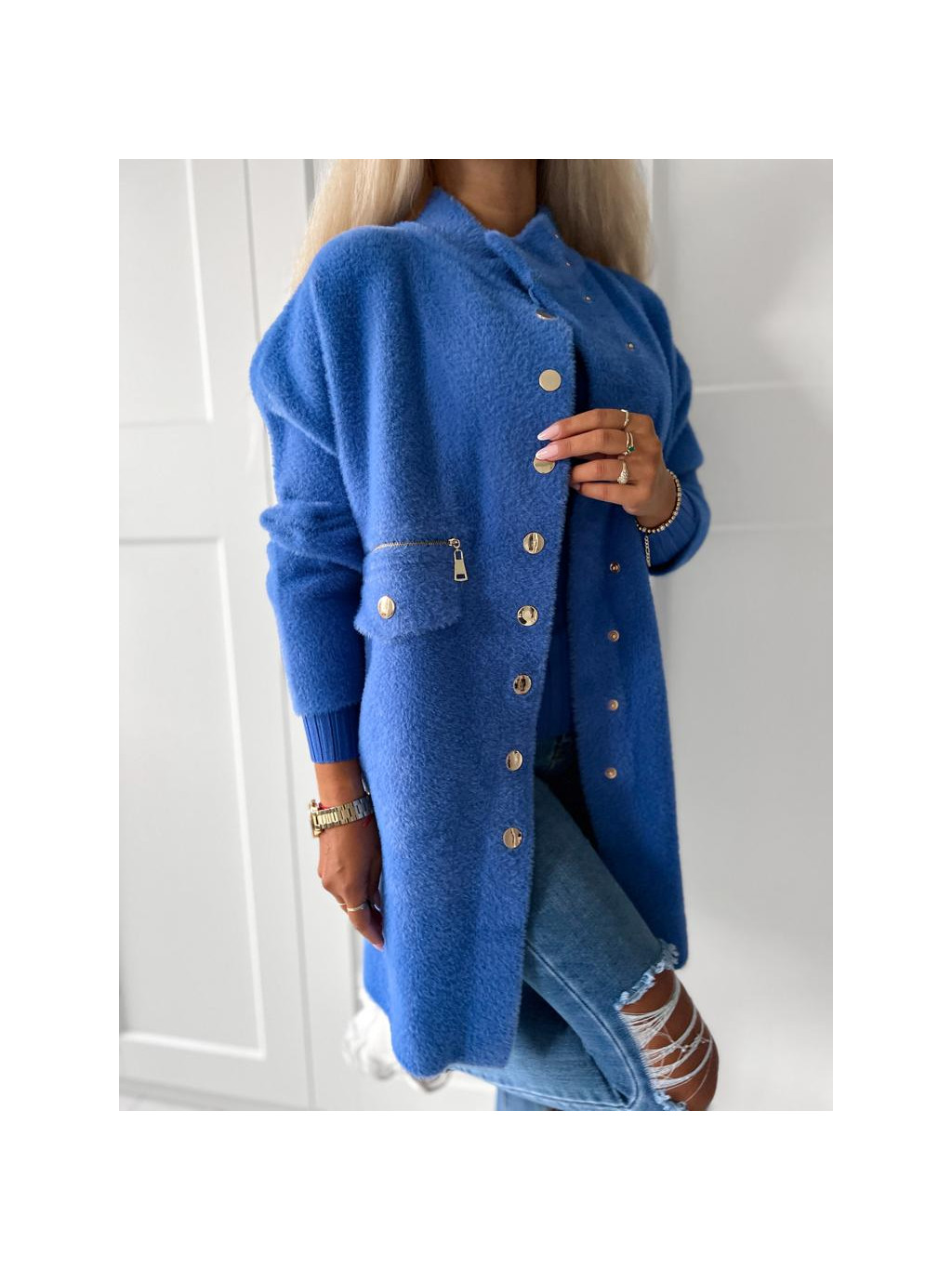 Štýlový alpaka kabátik so stojačikom a zapínaním na zlaté cvoky.