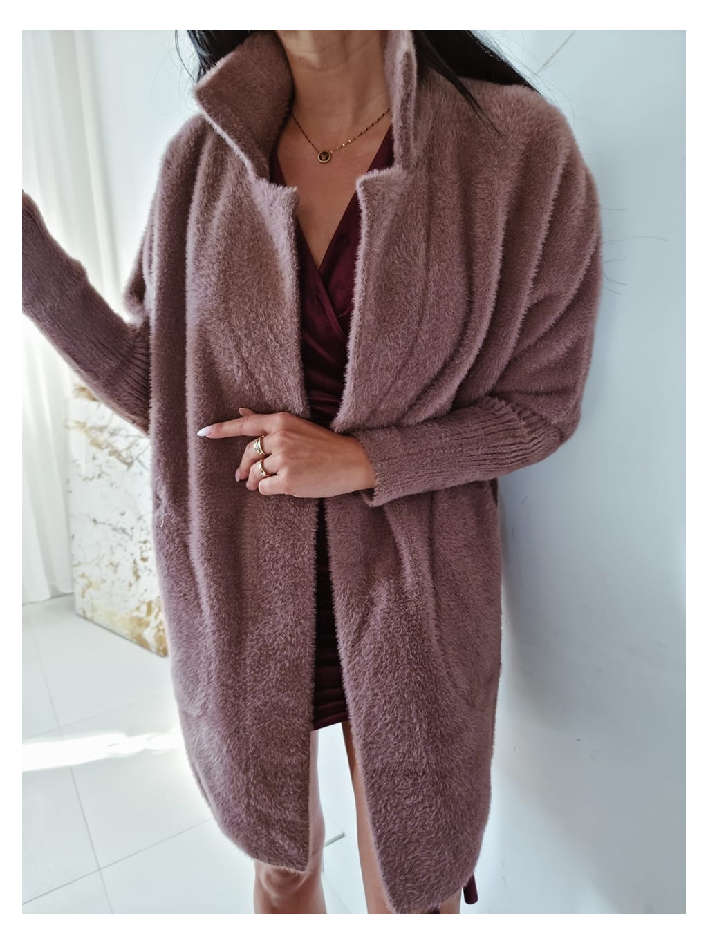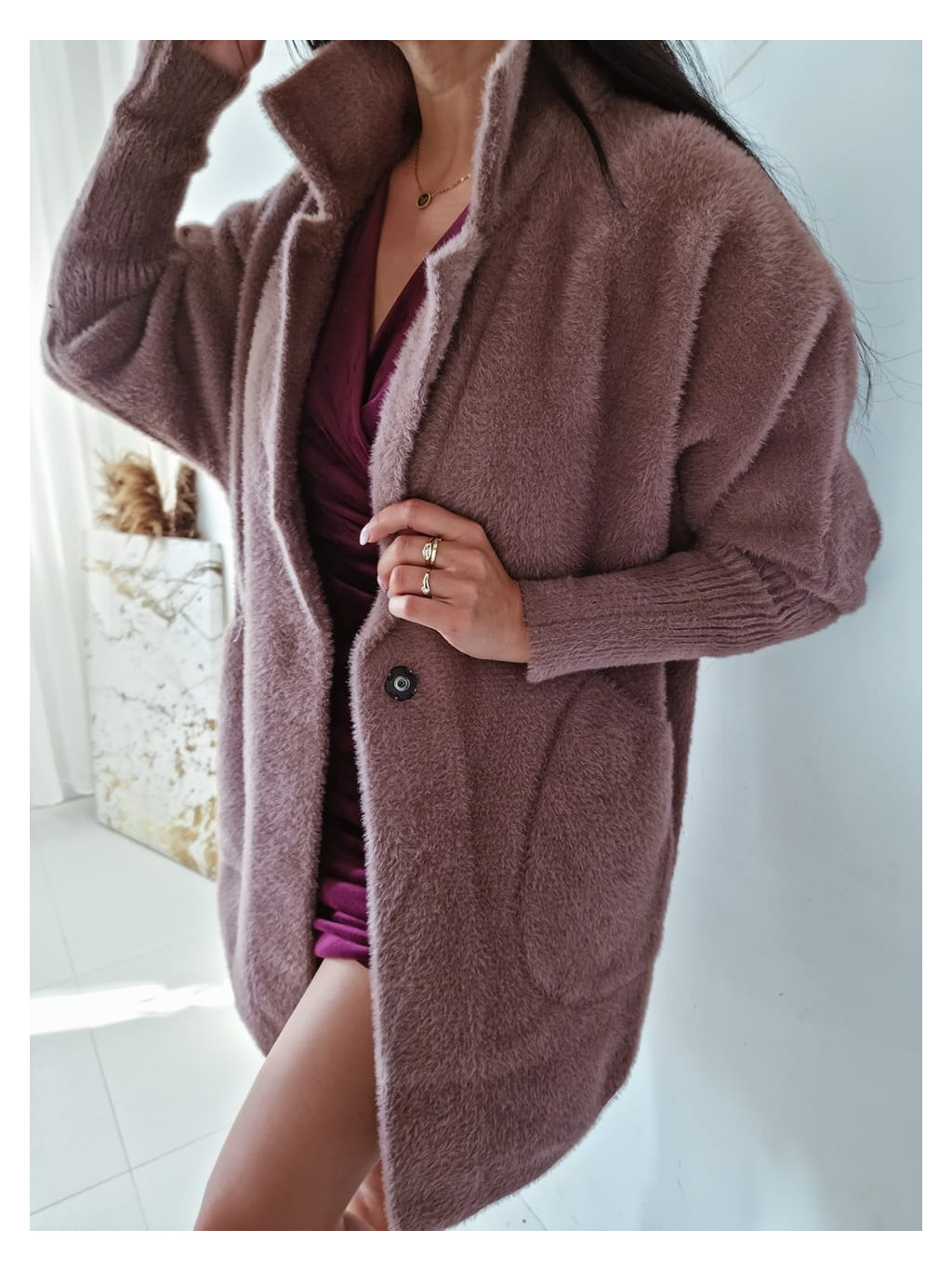 Pohodlný a mäkký kabátik bez podšívky doplnený vreckami a zapínaním na jeden patent. Rukávy sú zakončené širokou rebrovanou manžetou. Model je v oversize strihu a vďaka pružnosti sadne od veľkosti S po XL.