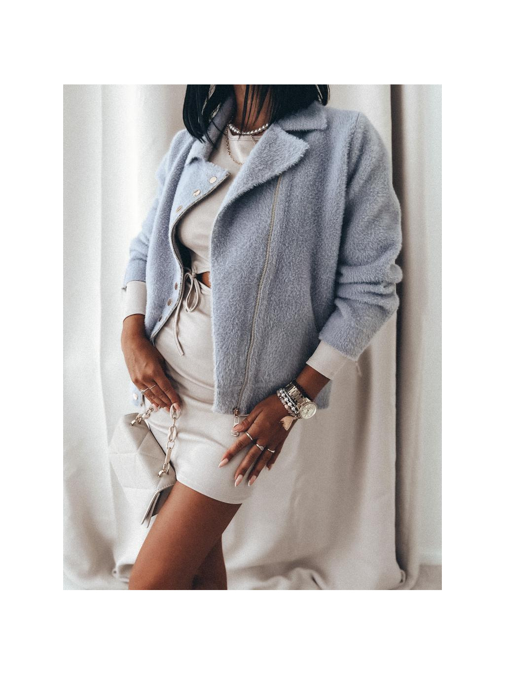 Pohodlný a mäkký kabátik bez podšívky zdobený zlatými cvokmi. Kabátik s prednými funkčnými vreckami so zapínaním na zips. Rukávy sú zdobené funkčnými zipsom.