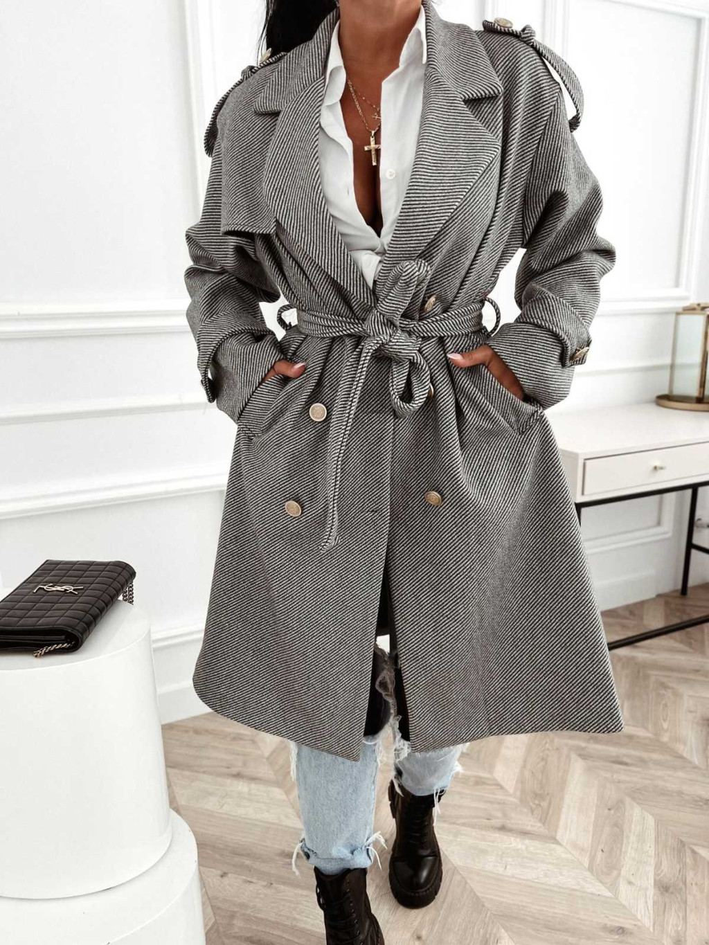 Kabát s jemným rebrovaním a opaskom, podšívkou a bočnými vreckami.