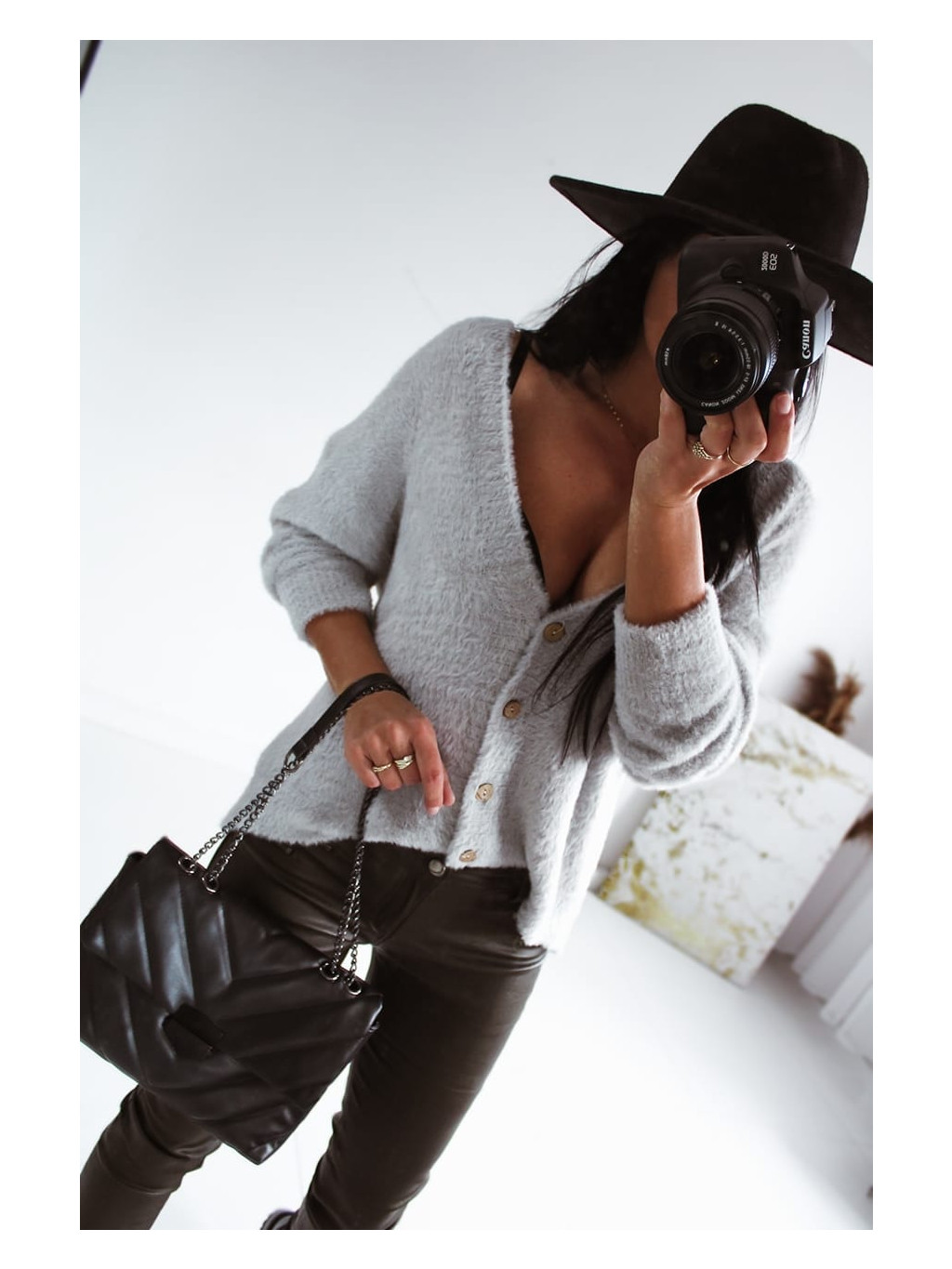 Príjemný huňatý svetrík voľnejšieho strihu so zapínaním na gombíky.