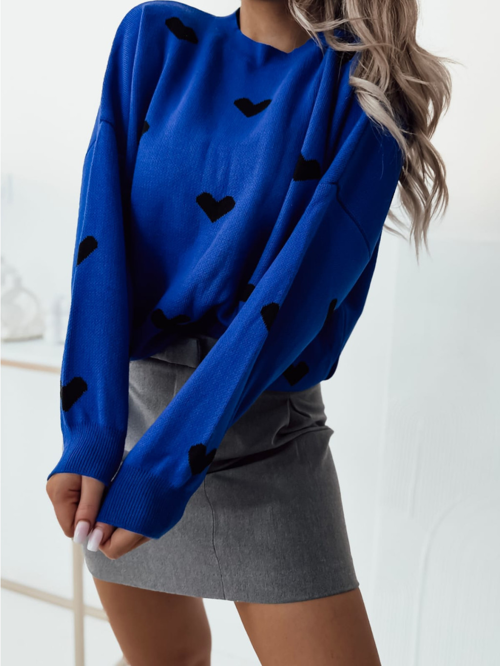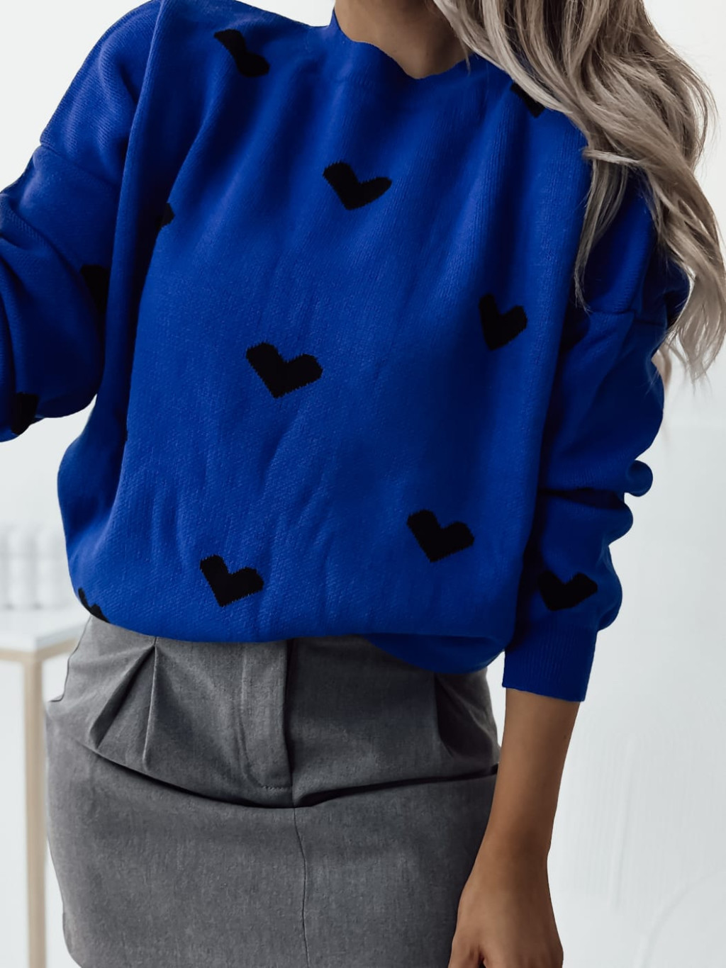 Štýlový sveter so srdiečkami voľnejšieho strihu.