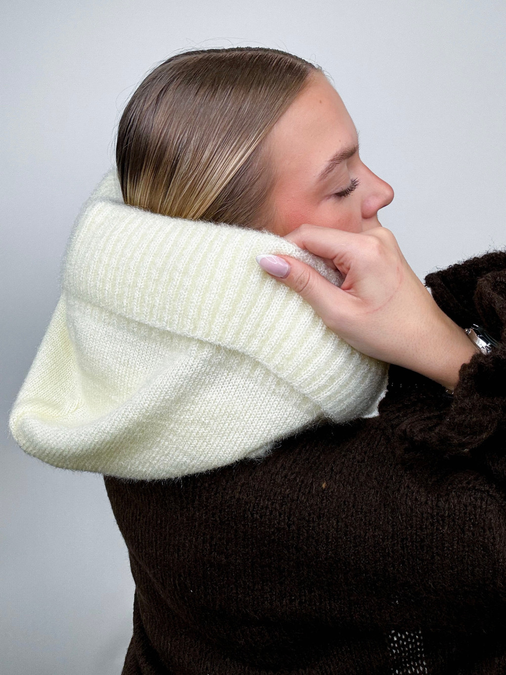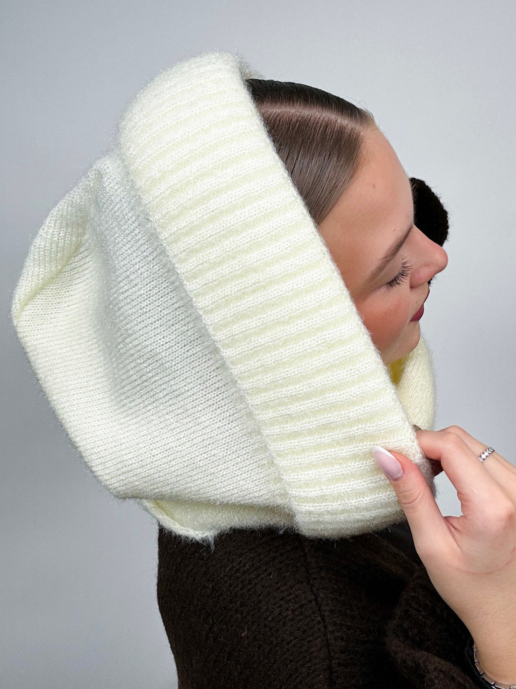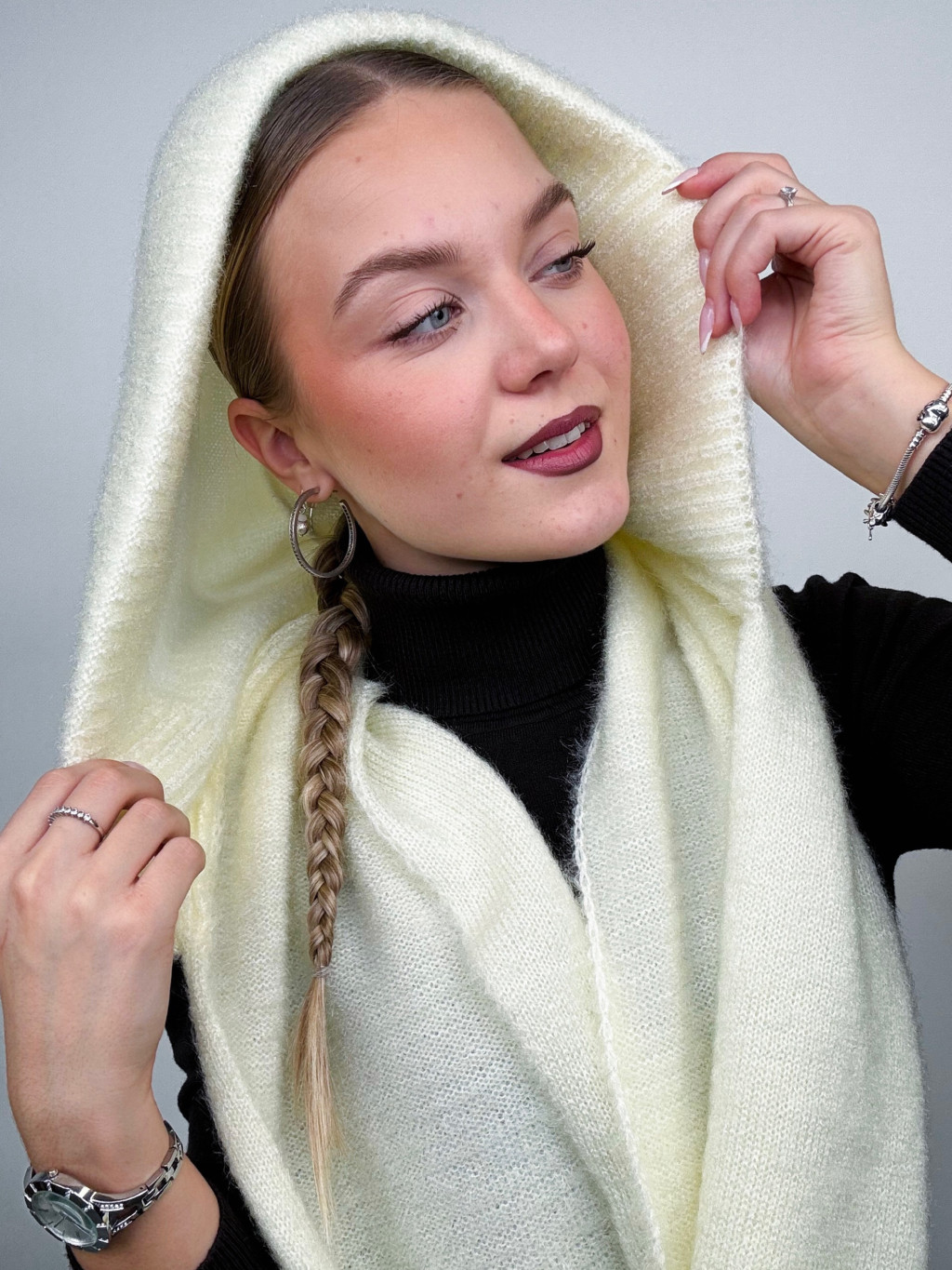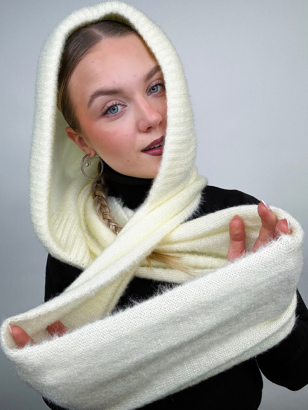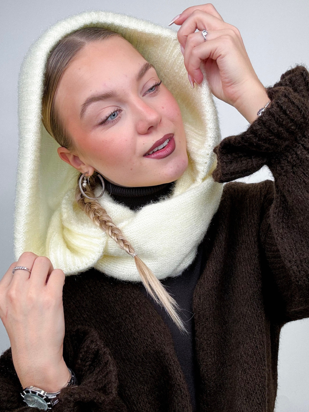 Zimný hit sezóny 2024 pletený šál s kapucňou.