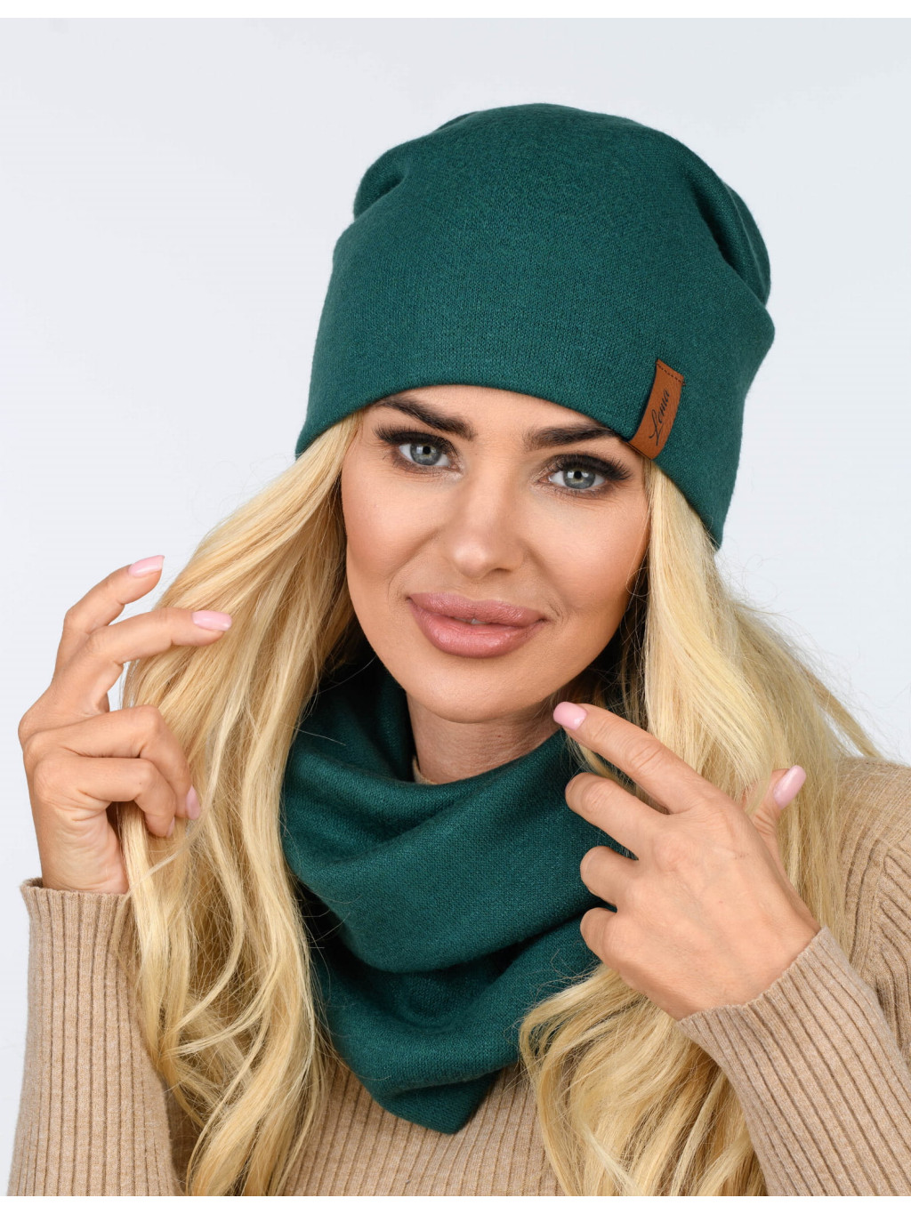 Dámsky set Lara - čiapka a šál - tmavo zelený