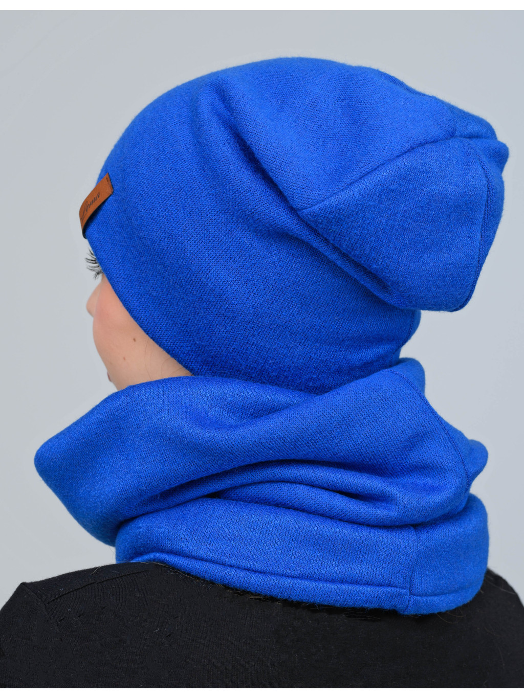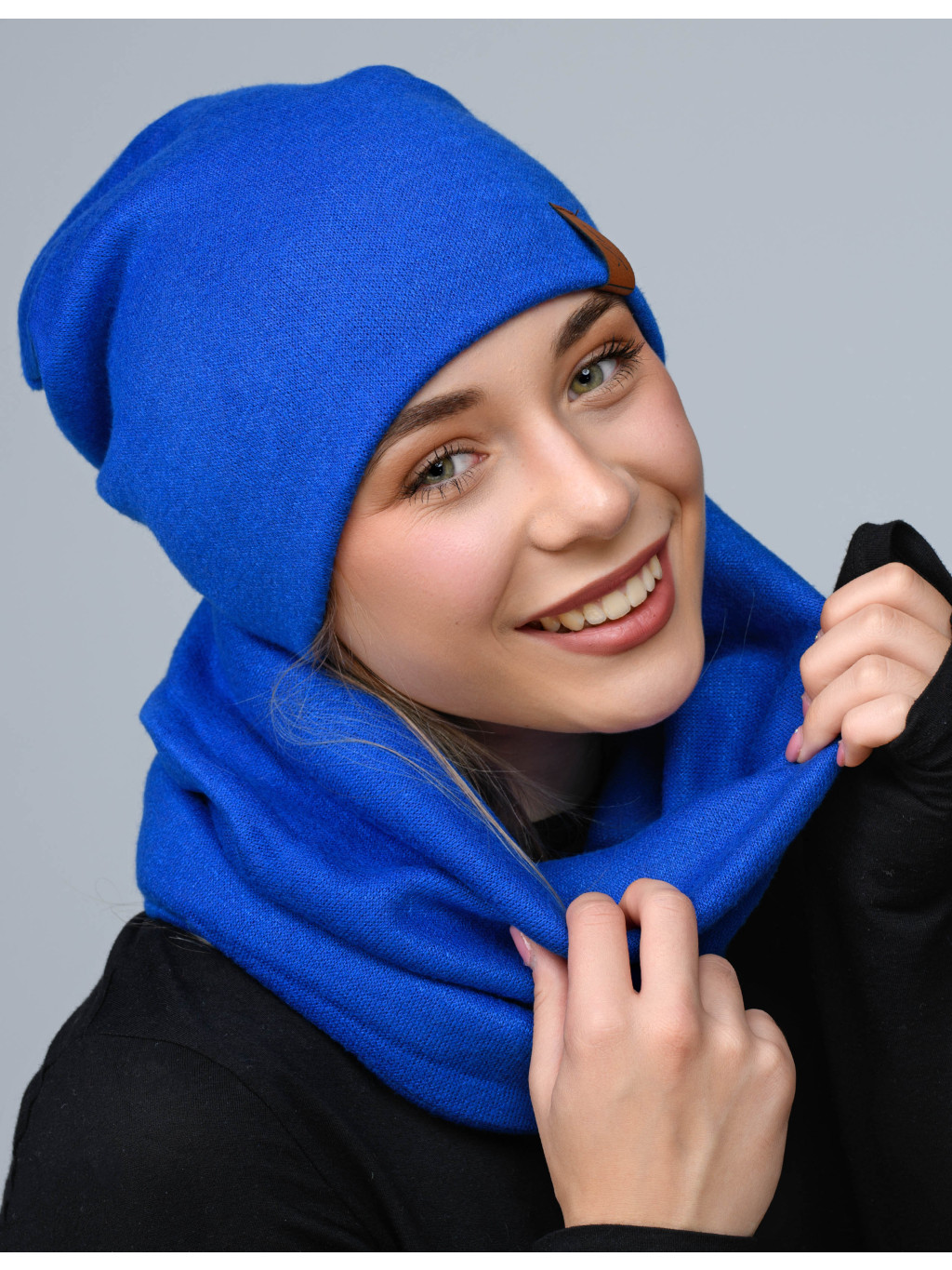 Set (čiapka + tunel) je vhodný na jeseň a zimu. Je vyrobený na dotyk z príjemnej, pružnej a hrejivej látky. Čiapka s decentnou koženou nášivkou.