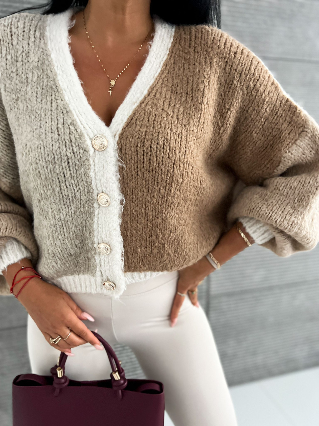 Dámsky sveter na gombíky Aiden - hnedý