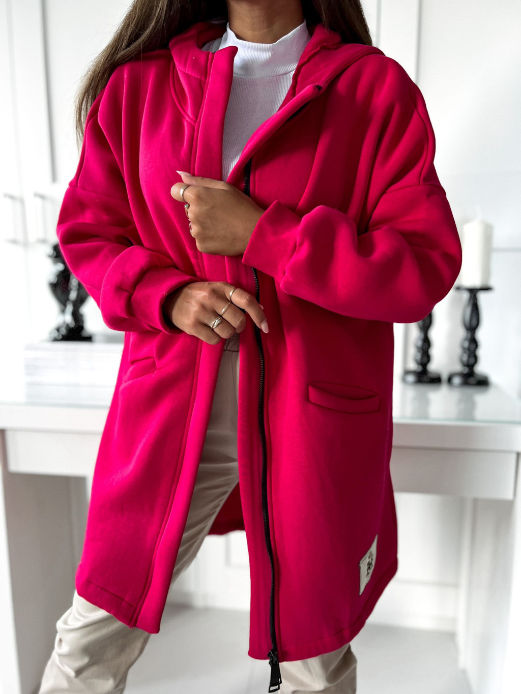 Dlhá oversize mikina na zips Iriana - ružová magenta