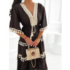 Dlhé boho šaty s krátkym rukávom zdobené krajkou a strapcami.