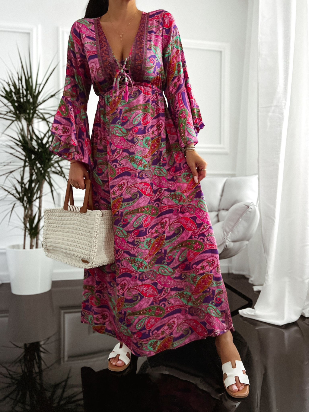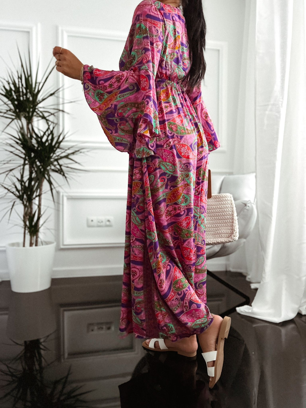 Dlhé hodvábne šaty Pinky - viacfarebné