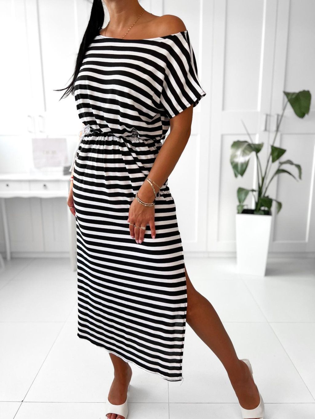 Pohodlné dlhé šaty s krátkym spadnutým rukávom.