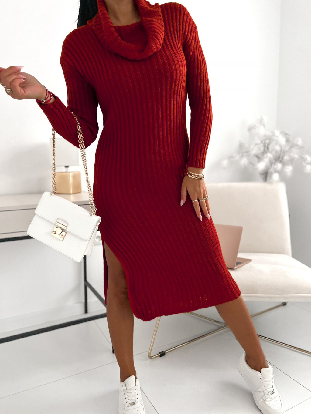 Rebrované svetrové šaty s rolákom v midi dĺžke.