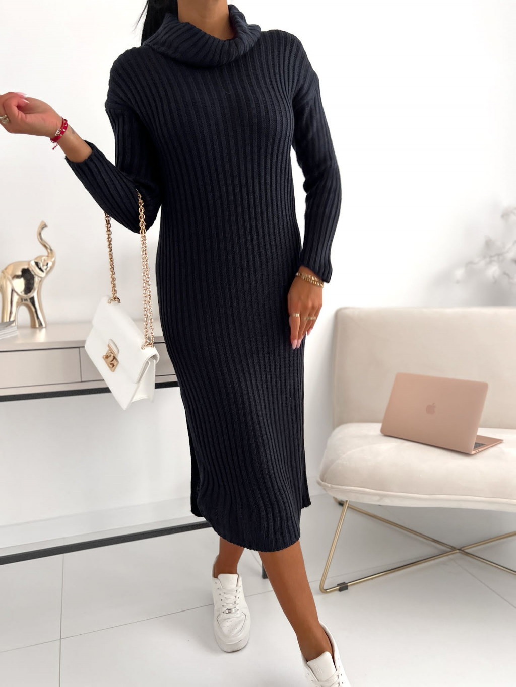 Rebrované svetrové šaty s rolákom v midi dĺžke.
