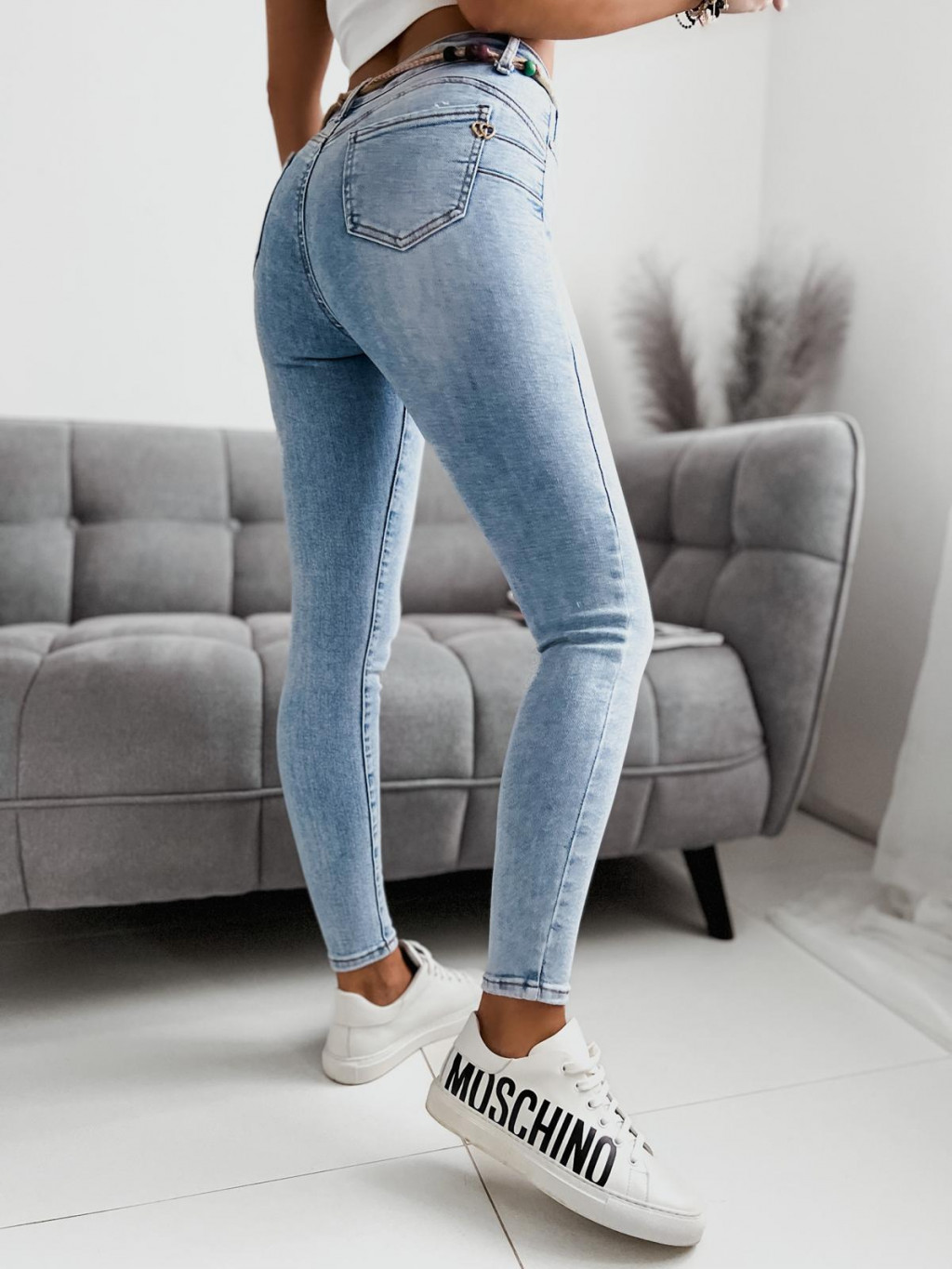 Push up Rifle so zapínaním na zips a gombík. Rifle s prednými a zadnými vreckami. Súčasťou modelu je opasok s korálkami.