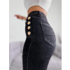 Rifle po bokoch zdobené zlatými ozdobnými gombíkmi. Model so zadnými vreckami. Rifle so zapínaním na zips a gombík.
