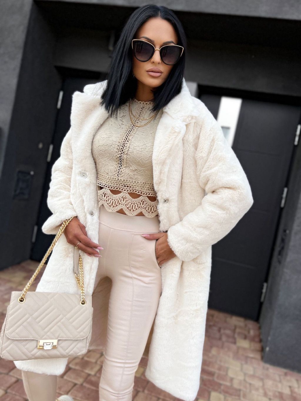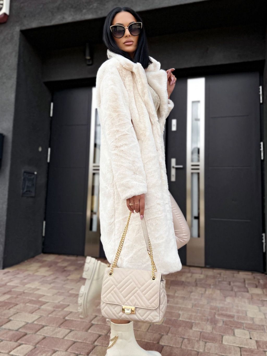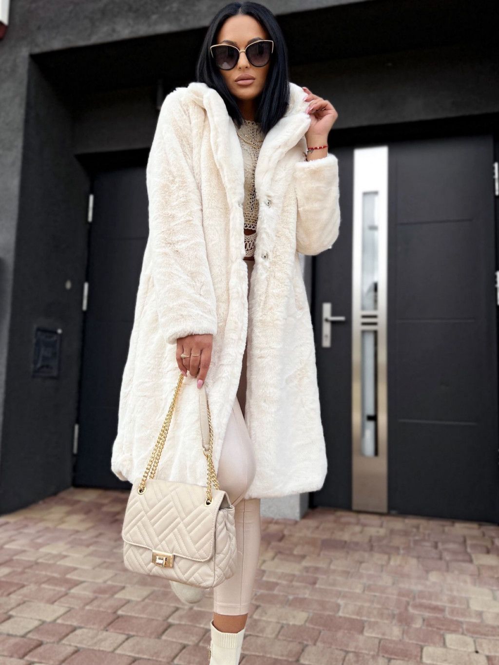 Huňatý Teddy kabát - ecru