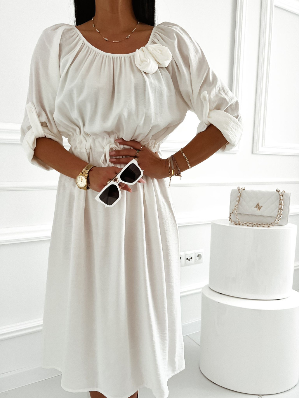 Jednofarebné midi šaty s dlhým rukávom zdobené 3D aplikáciou.