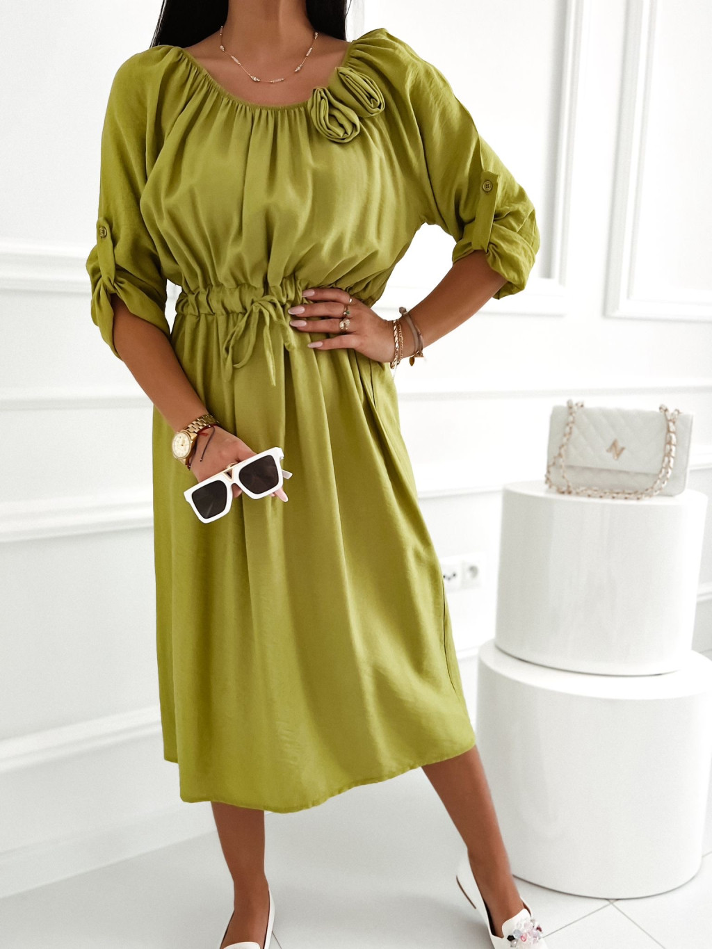 Jednofarebné midi šaty s dlhým rukávom zdobené 3D aplikáciou.