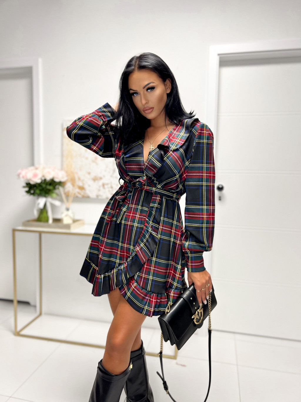 Šaty s dlhým rukávom, gumičkou v páse a látkovým opaskom vo farbe šiat.
