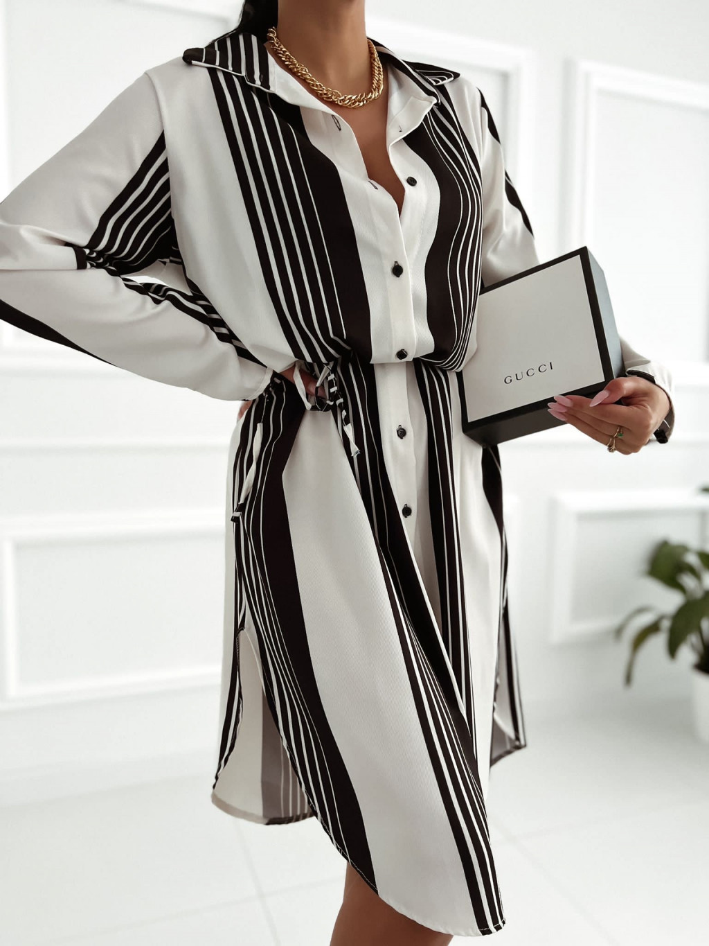 Šaty so zapínaním na gombíky.