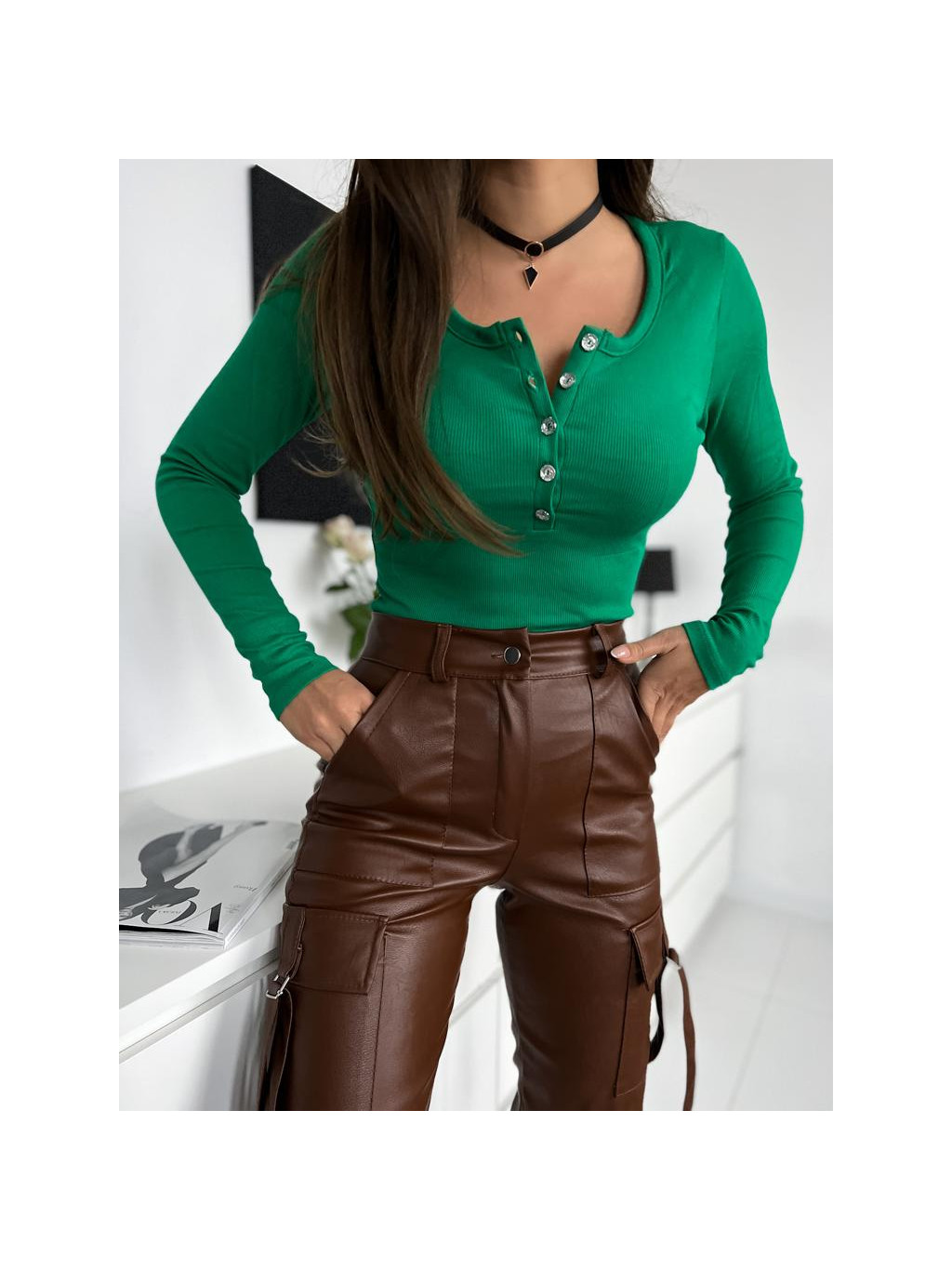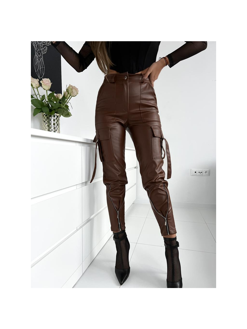 Jemne zateplené koženkové cargo nohavice s vysokým pásom.