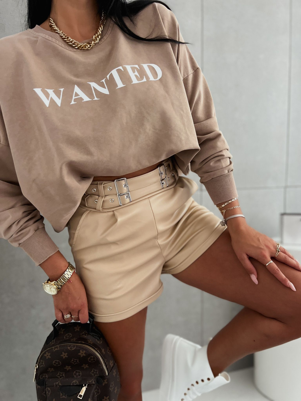 Koženkové kraťasy Noemi - bežové