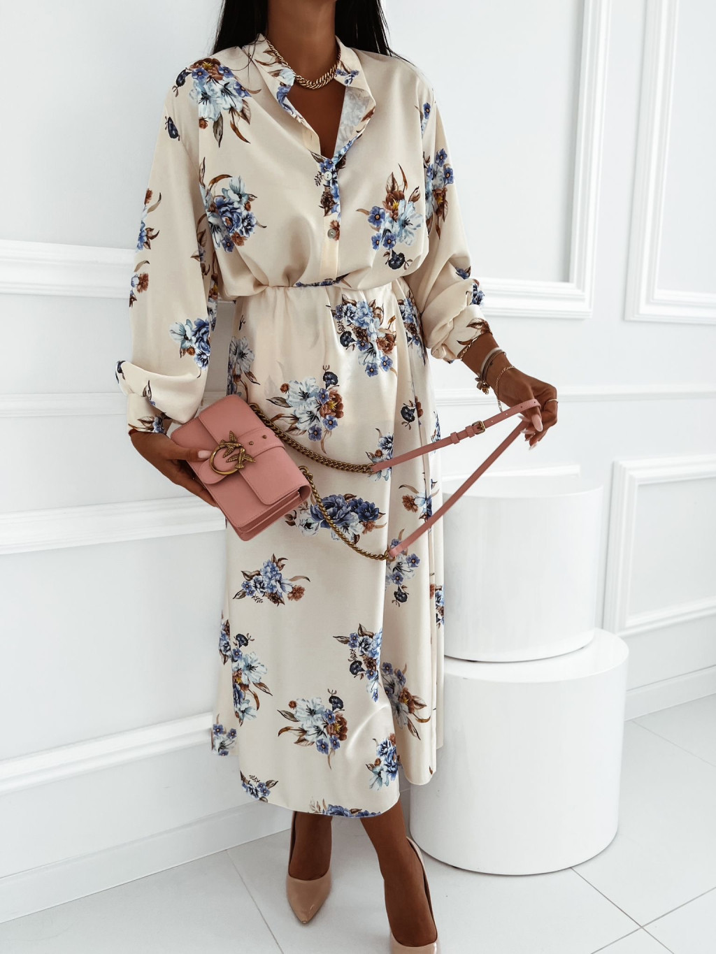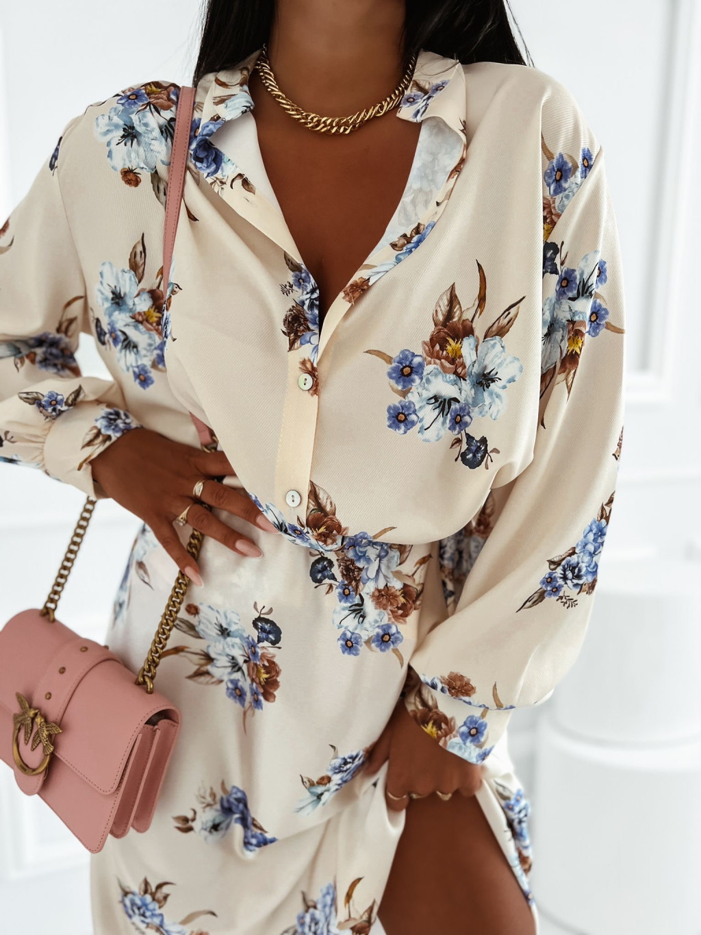 Košeľa voľného strihu. Sukňa s gumou v páse.