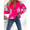 Kvetovaný sveter na gombíky Misty - ružový magenta
