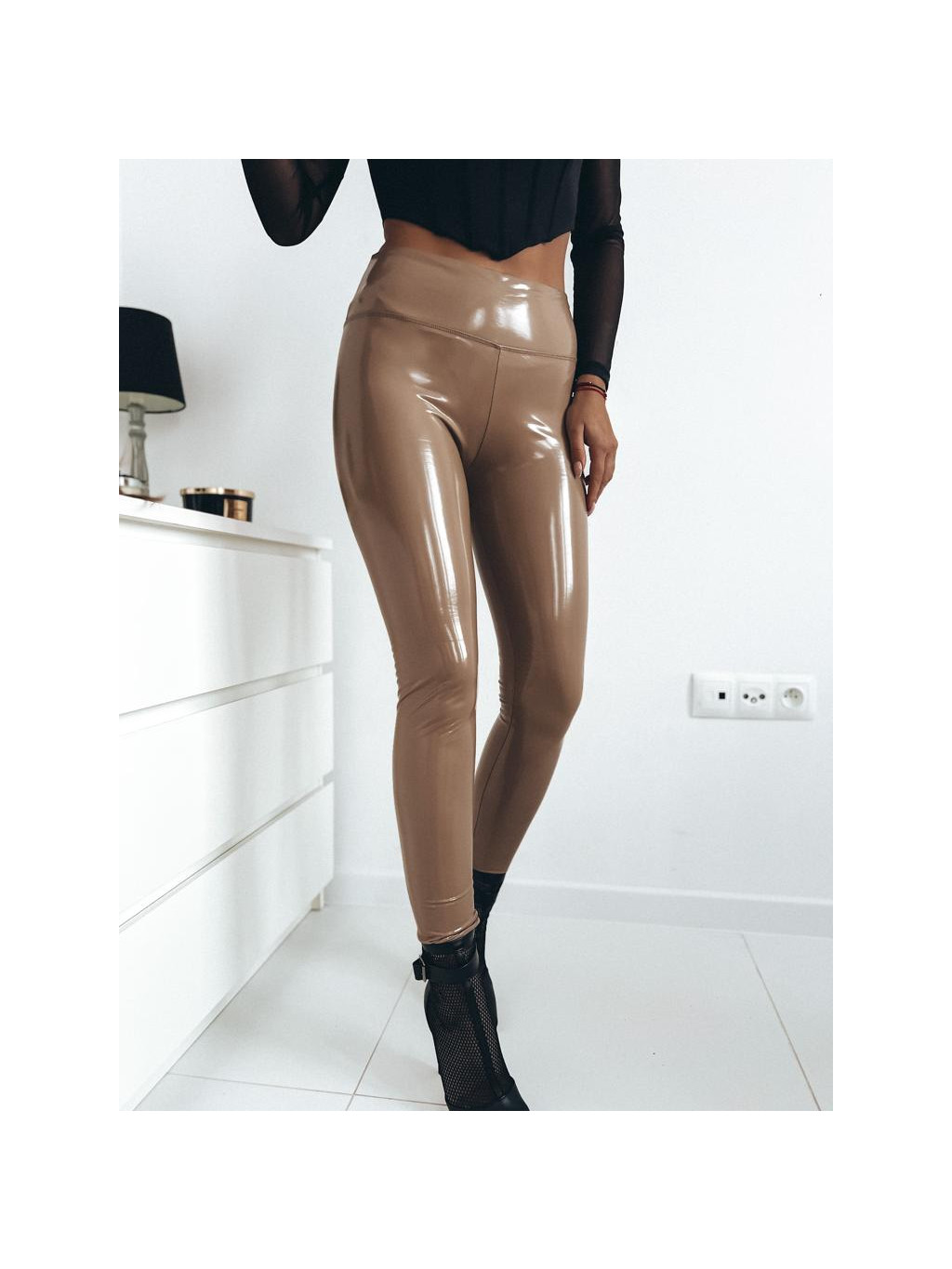 Zateplené lesklé latexové legíny s vysokým pásom.