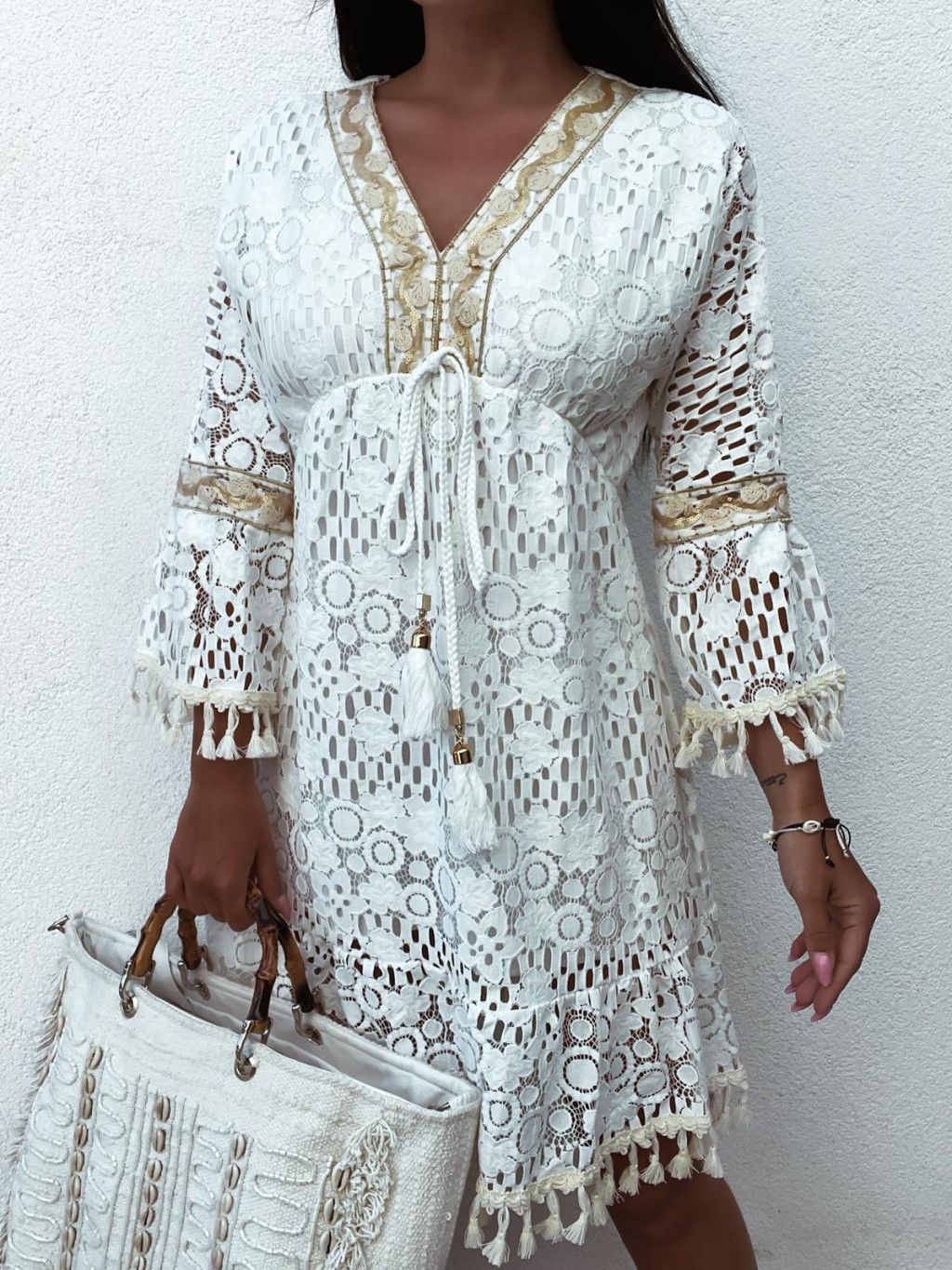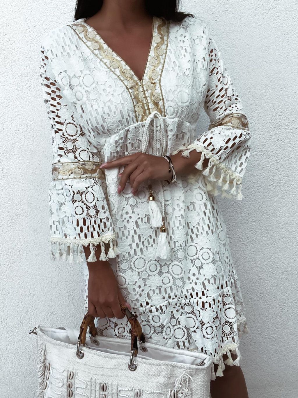 Letné čipkované boho šaty Layla - biele
