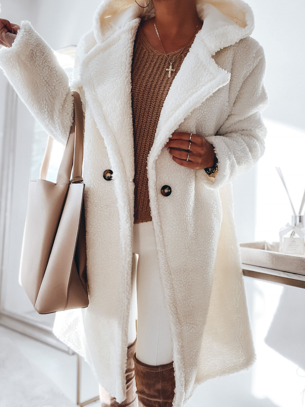Dlhý teddy kabát s kapucňou v oversize strihu.