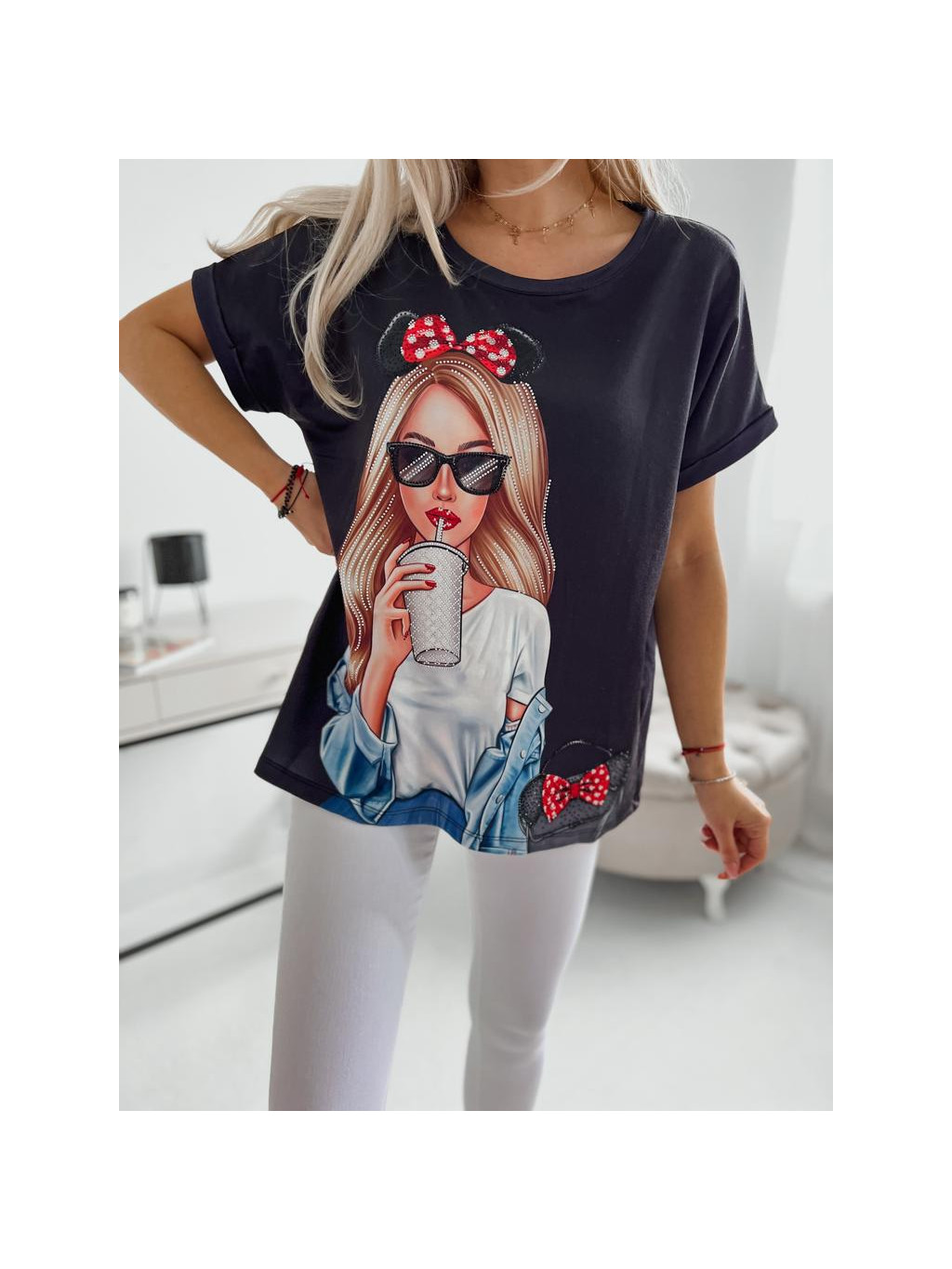 Trendy tričko s potlačou v oversize strihu zdobené štrasovými kamienkami.