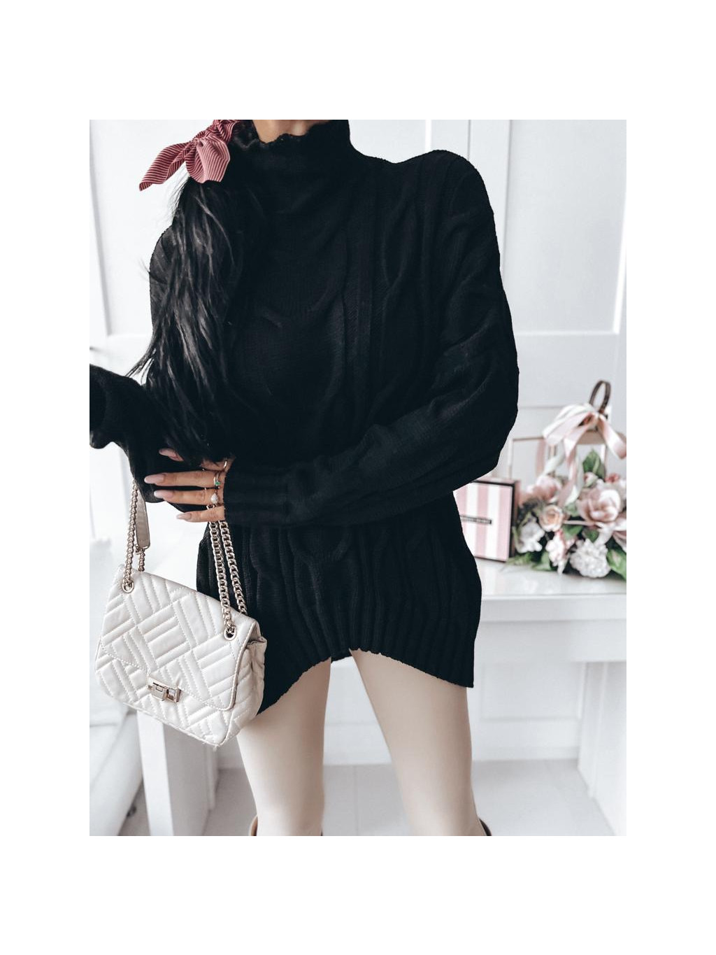 Pletený sveter s rolákom Rian - čierny
