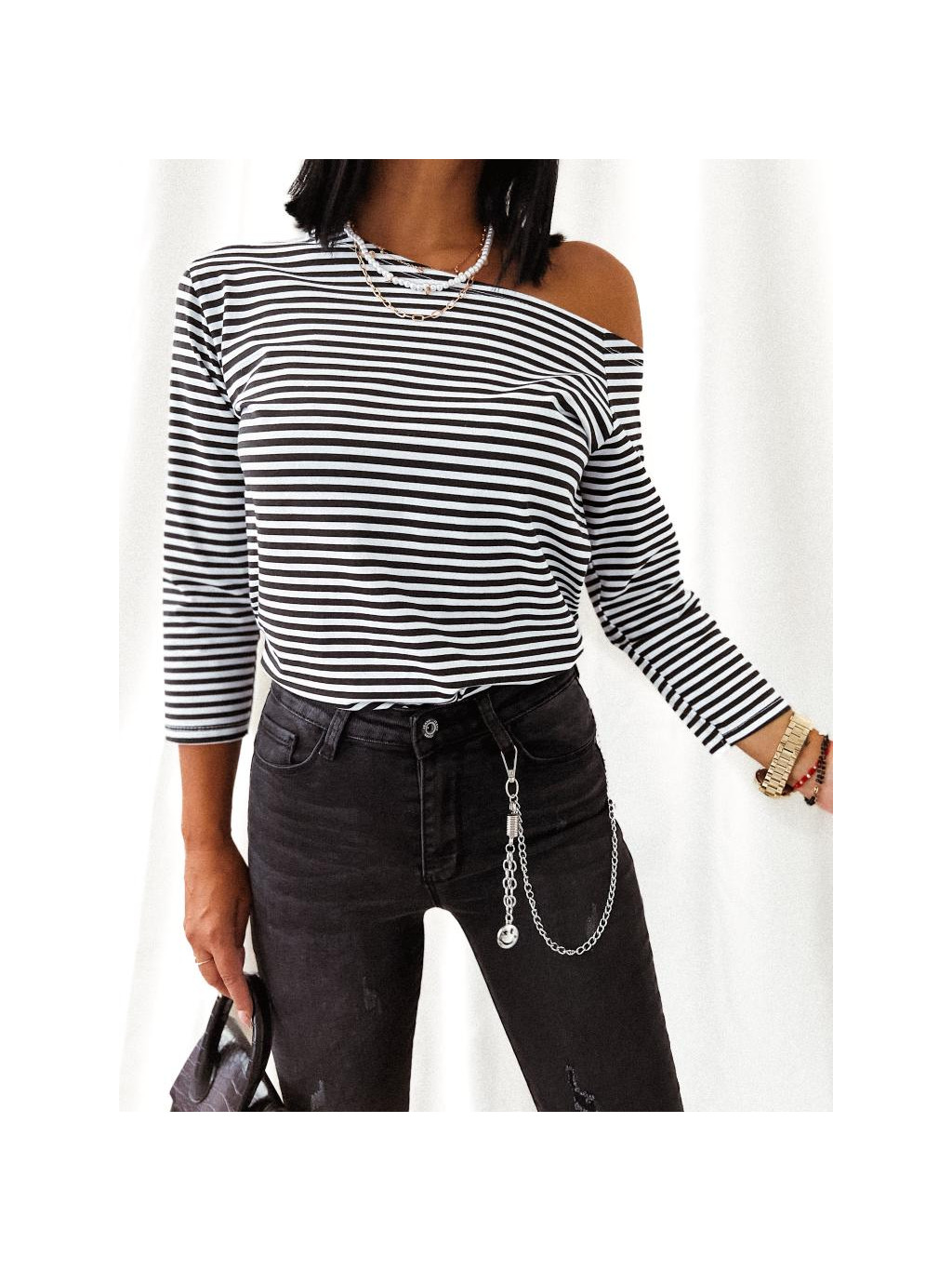 Bavlnené pruhované tričko s 3/4 rukávom.