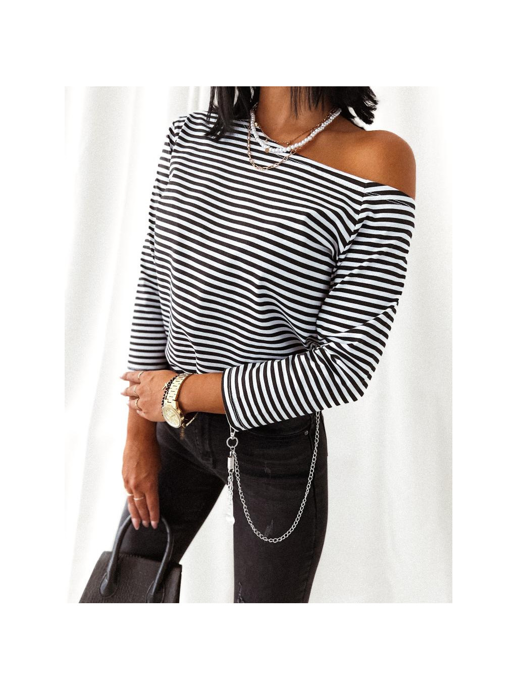 Pruhované tričko s 3/4 rukávom Rhodia - čierne
